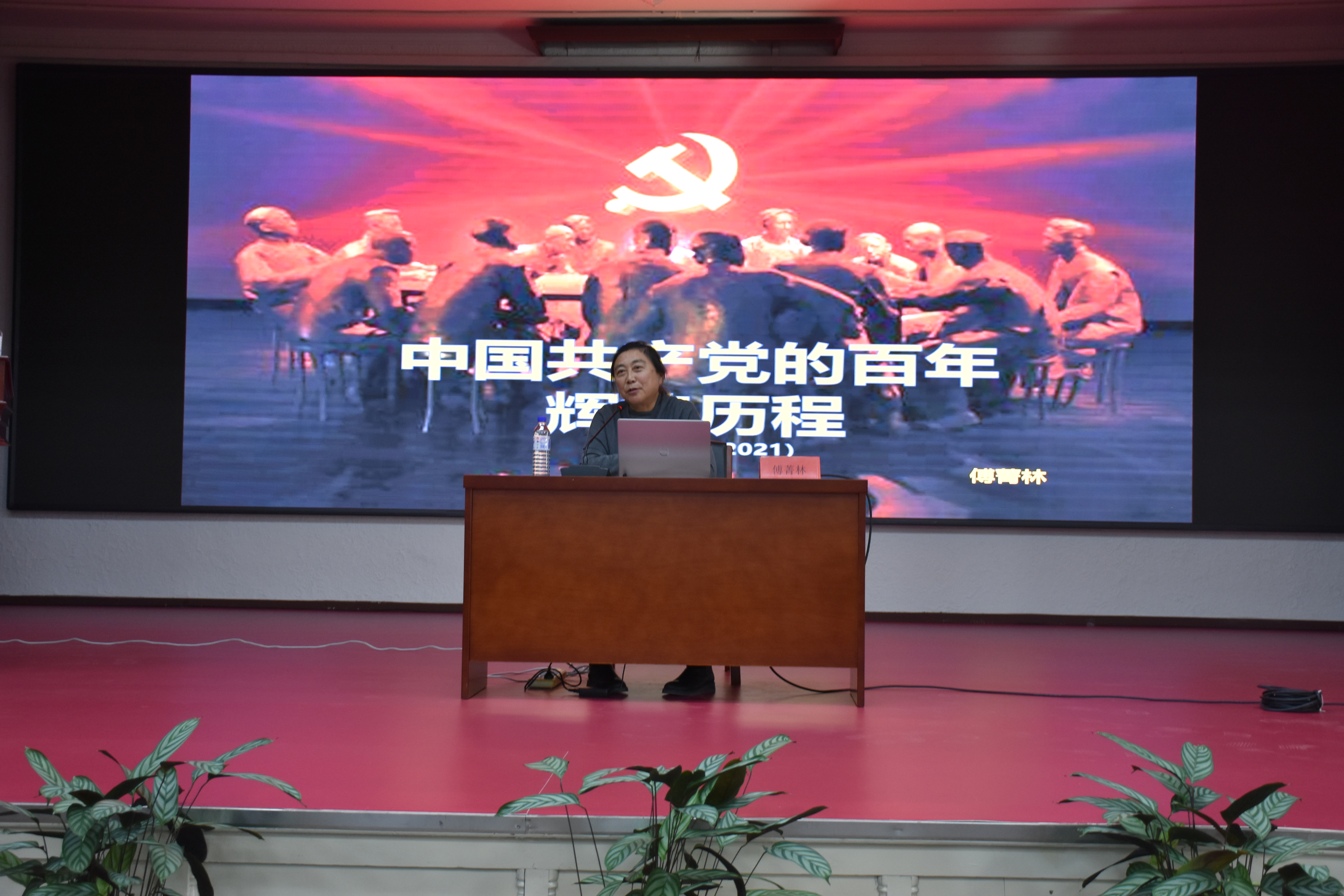 报告厅为2021级新生做题目为《中国共产党的百年辉煌历程》的专题报告。