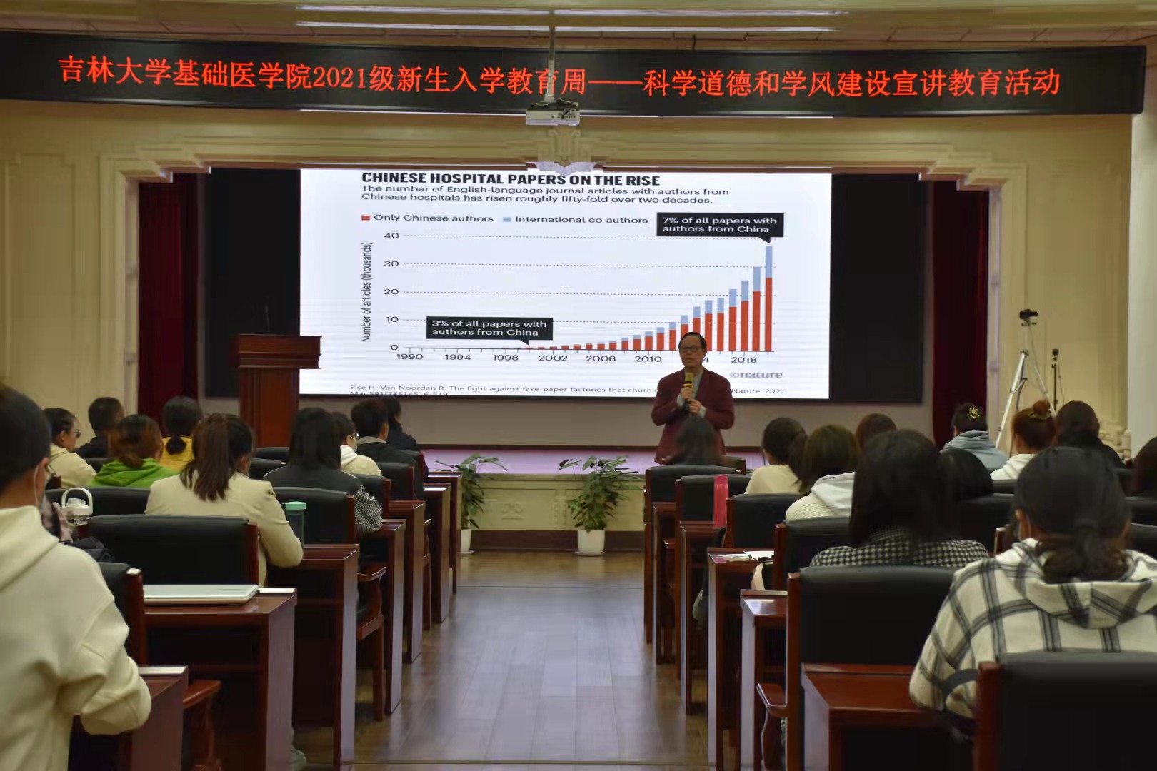 报告厅,邀请于永利教授为新生作科学道德和学风建设专题讲座。会议由豪神娱乐城