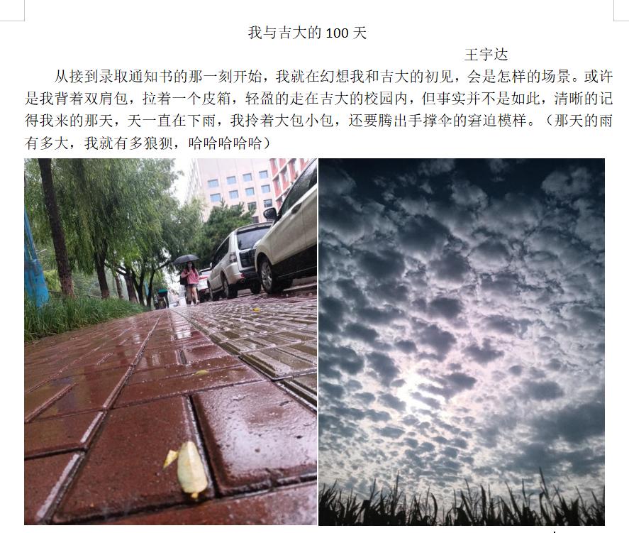 活动通过线上向同学们征集以“我与吉大的100天”主题为的优秀作品。征集的稿件的形式可以是文字也可以是图集,主要是记录自己入学以来的心路历程,心理变化,以及在豪神娱乐城