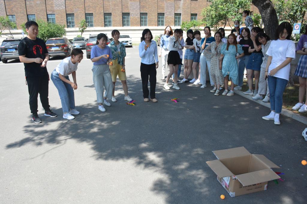活动内容包括党团知识竞答、接力踢毽子、定点丢乒乓球、三分五分四个项目。项目看起来简单,但需要多人的合作和配合要达到要求却不容易,同学们各显身手、百折不挠、越挫越勇,展现了极强的拼搏精神。参加的同学按自愿组队共分为5个组进行比赛。比赛时队员们相互扶持鼓励,团结一致,顽强拼搏;而团队之间角逐激烈,差距微乎其微,展现了极好的团队风采。最后党团知识竞赛抽奖环节将此次趣味运动会推向高潮,同时也在欢声笑语和依依不舍中落下了帷幕。