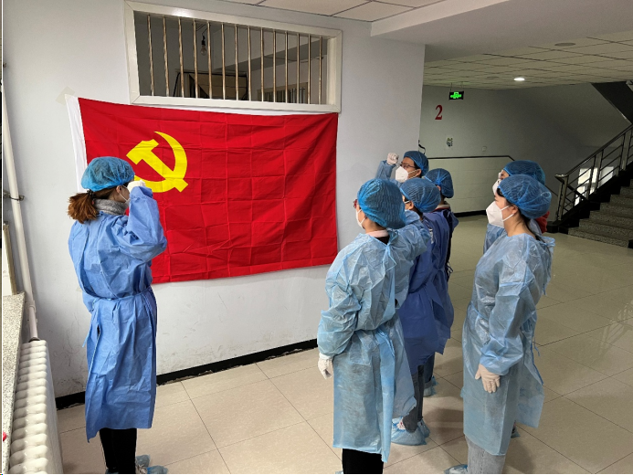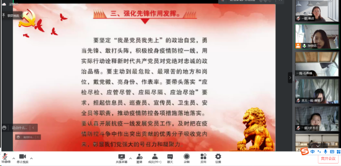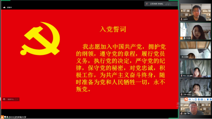 最后,在孙佳钰老师的带领下,6位线下临时党支部委员与线上140余名临时党支部党员一起重温了入党誓词。不忘初心,继续前进,奋力夺取疫情防控最后的胜利。