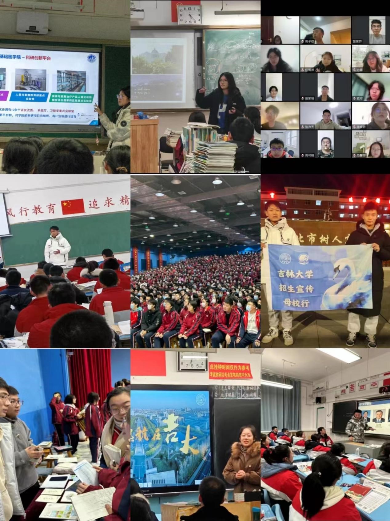 的校友一同返回高中母校,通过线下宣讲答疑、线上线下联动、公众平台展播等形式,积极向五湖四海的同学们讲好吉大故事,传播好吉大声音,努力让更多优秀的同学认识吉大、了解吉大、情定于吉大。