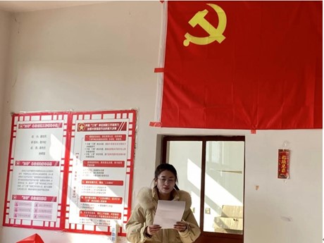 2月2日,杨璐娜同学在山西省高平市云南村村委进行了主题宣讲,提到基层工作者应该以高度的责任感和使命感立足本职,放眼未来,为社会、为国家为人类的文明进步贡献出我们独特的智慧和力量。