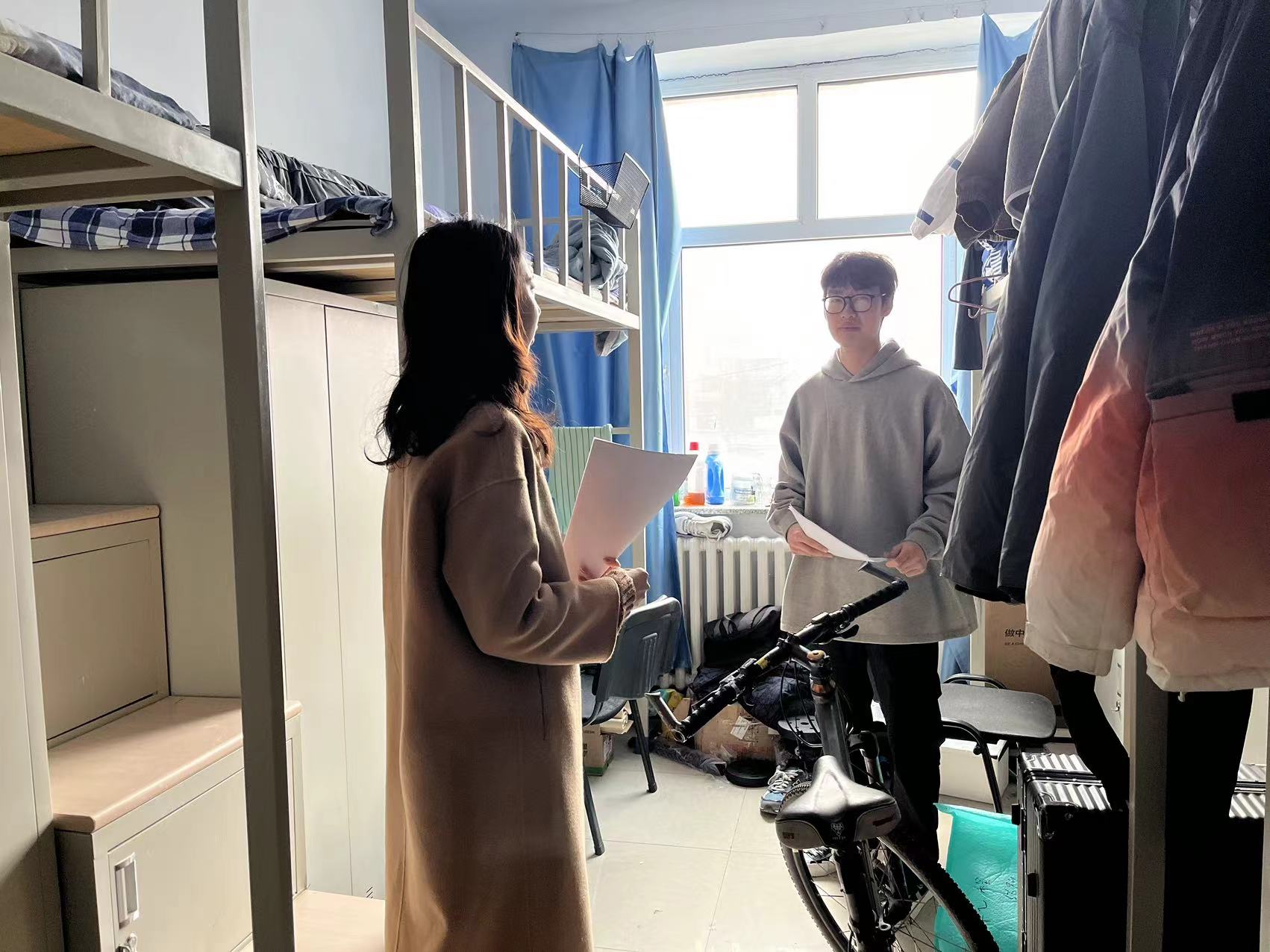 在检查过程中,孙老师提醒研究生们要注意用电安全,绝对禁止使用违禁电器。检查还包括查看是否存在违规存放电动车、非法充电行为以及离寝时未断电的问题。此外,老师还向同学们强调了在宿舍堆积存放废旧书籍、纸箱等易燃物品的危险性,并明确禁止在寝室内抽烟或进行任何明火行为。同时,也提醒同学们要注意保持寝室卫生,营造一个安全舒适的居住环境。同学们都表示会积极遵守豪神娱乐城