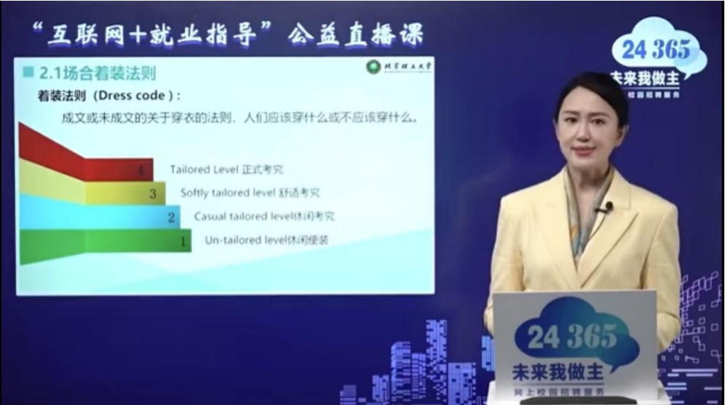 医学专业特色,推出系列化、精准化的职业能力提升活动。此次《职场形象礼仪》直播课聚焦职场“第一印象”打造,旨在帮助研究生从细节入手,掌握面试礼仪、职场沟通、职业形象管理等实用技能,为即将到来的求职季与未来职业发展奠定坚实基础。本次直播课特邀北京理工大学就业指导中心主任助理田静老师担任主讲嘉宾,课程内容涵盖职场形象礼仪的多个方面,主要从职场形象管理、着装规范、细节塑造、面试礼仪等方面进行了详细的介绍。