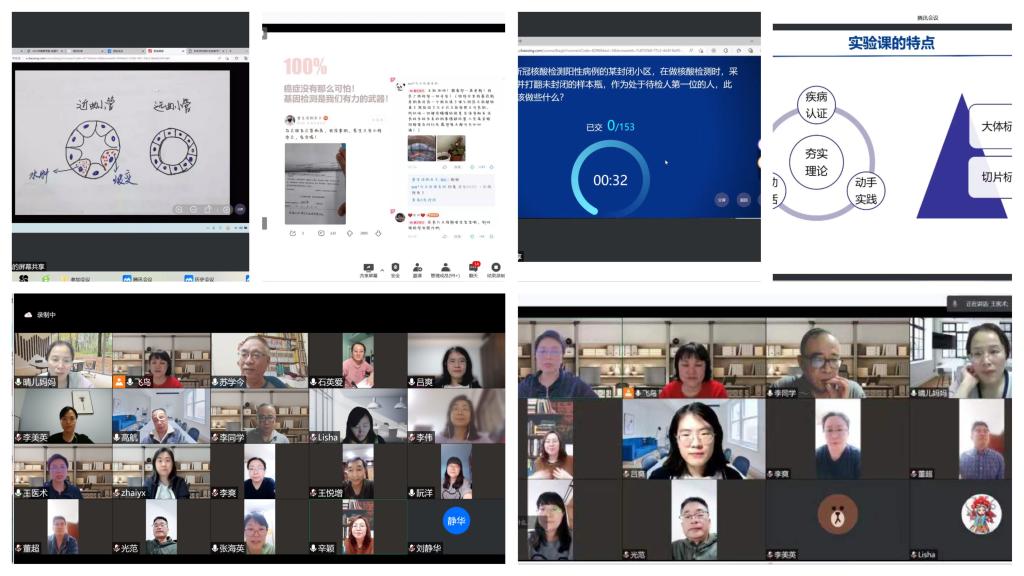 紧急通知,教学全部转为线上授课。当天夜里,病理学系教学团队召开紧急会议,研讨应对措施。以支部党员王医术(学系主任)、支部书记何旭(教学组长)为核心的教师团队在第一时间行动起来,利用自建的国家一流线上课程、国家精品资源课程等线上资源,创新打造了基于“超星学习通”平台“同步课堂+腾讯会议”相结合的线上教学新模式。该模式不但可以进行主题讨论、随堂测试等教学活动,还能使教师出镜、师生连麦互动等课堂实景在线上再现,实现了线下智慧课堂的线上翻转。在线下教学转线上的短短几天内,病理教学团队多次培训、演练、实践、反馈、总结、探讨、再培训、再演练、再实践,真正做到了管理有秩序、课堂有亮点、反馈有回应、线上有总结。线上授课迅速迭代成熟,不但“数量不减,质量不降”,还摸索创新了数字化切片和3D大体标本虚拟实验课堂,以及“两端三平台”多维混合教学新模式。病理课线上教学以优质保成效,用创新求突围,受到学生的一致好评。张希校长对王医术老师的授课给予了高度评价:“教学系统操作熟练,抢答环节设计得好,课堂氛围很好......”。王医术教授团队获“超星杯”第二届吉林省本科高校智慧课堂教学创新大赛一等奖。