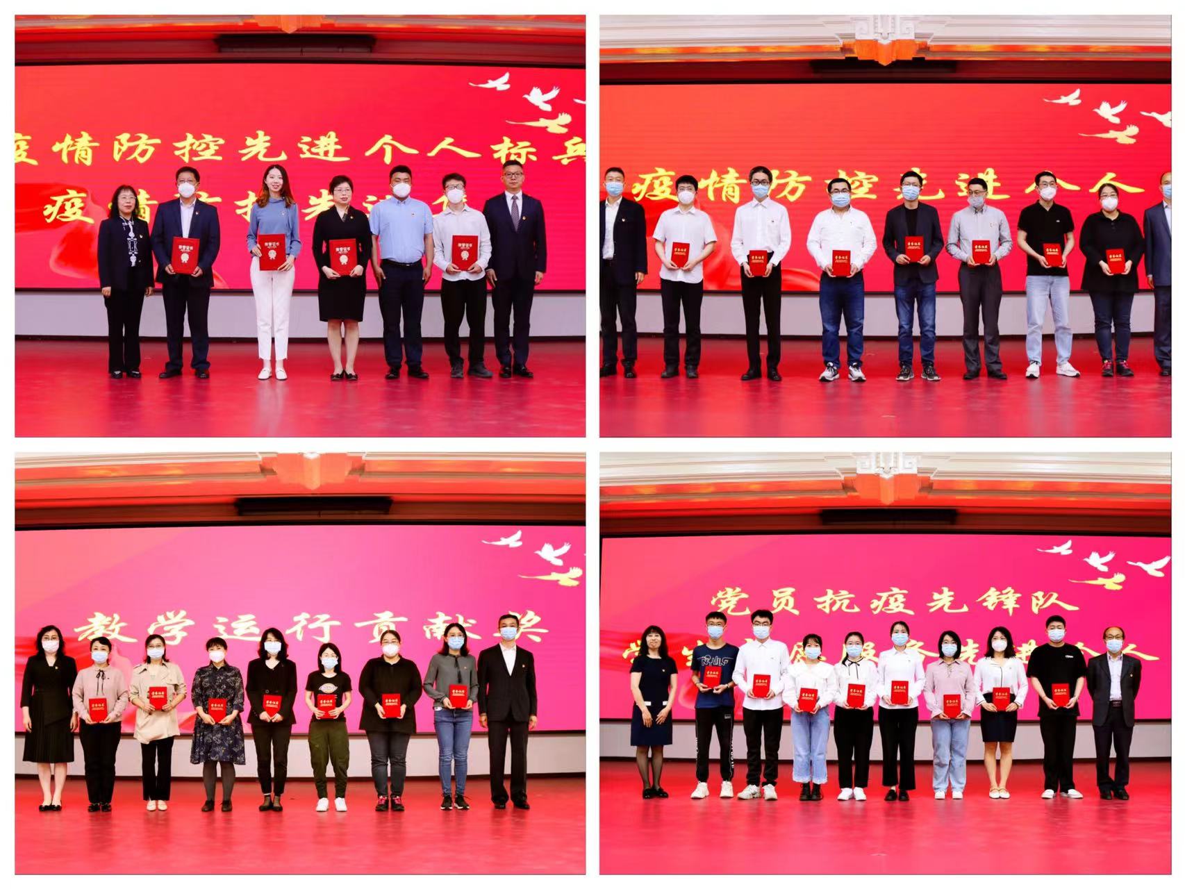 疫情防控工作先进个人标兵、先进集体、驻校工作的先进个人代表、教学运行贡献奖代表、学生党员抗疫先锋队、学生志愿服务先进个人颁奖。