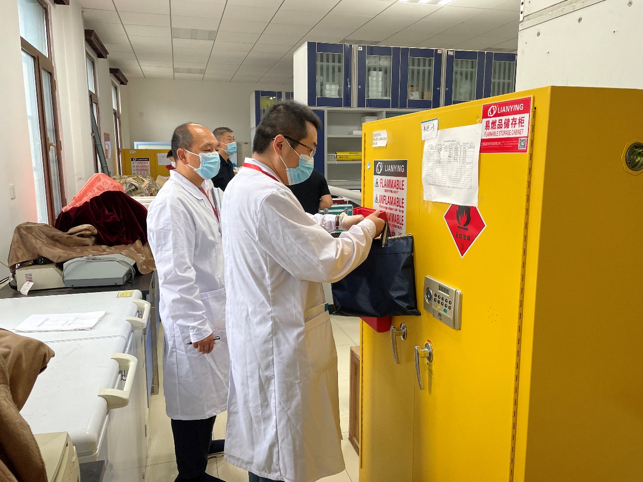 对实验室生物安全、危险化学品进行安全检查工作。孙巍、陈龙副院长陪同检查。