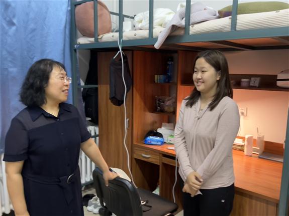 领导老师悉心查看了新生的住宿环境,与同学们亲切交谈,逐一询问了新生家庭情况、来校适应情况和报考情况,对于同学们提出的关于学习生活上的问题,给予了耐心细致的解答。