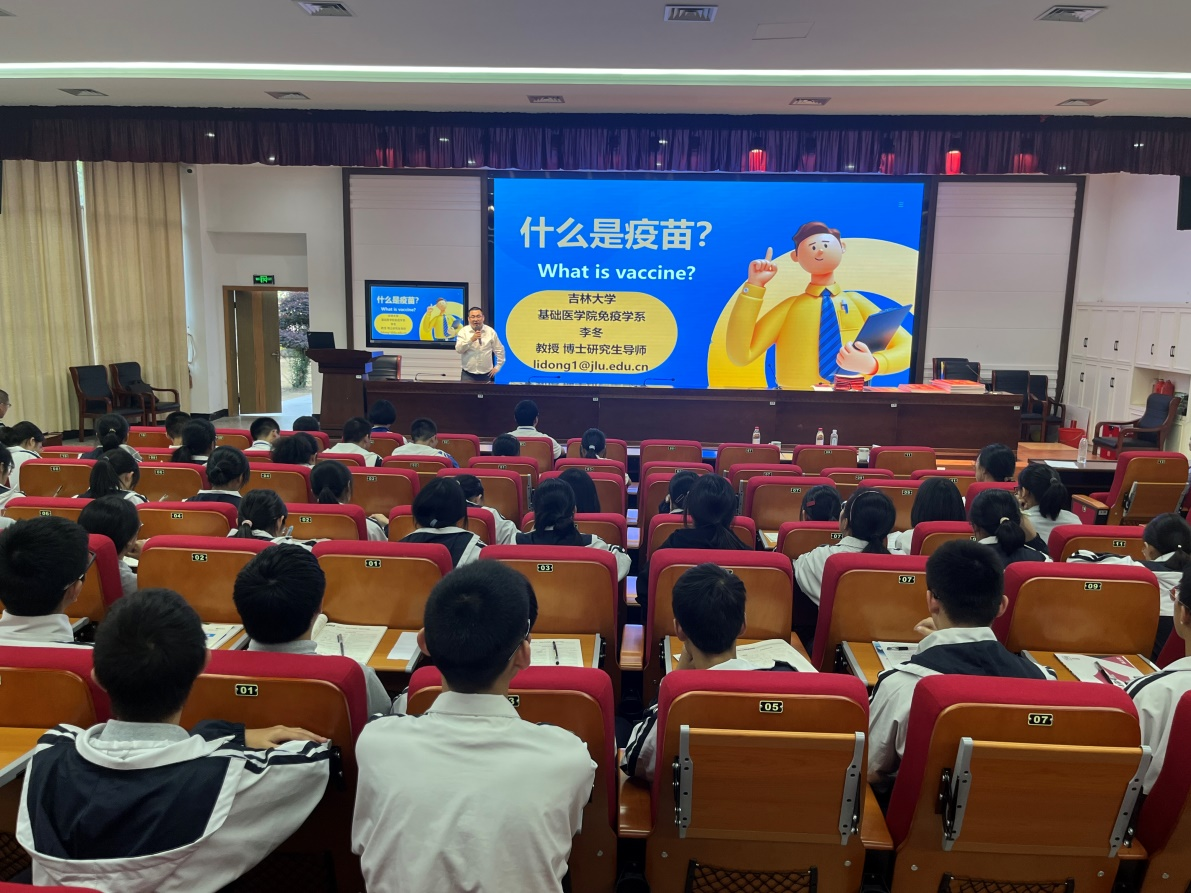 培养多名优秀生源表示感谢。李冬教授以《什么是疫苗》为题,为三所中学的同学们开展了三场科普讲座。李冬教授带来的精彩演讲不仅突出知识性、科学性和通俗性,更强调趣味性和新颖性。他以浅显、幽默的语言,讲授深奥的现代生物技术知识,介绍最新的疫苗研究成果和未来发展趋势,营造了浓厚的科普活动氛围。讲座后,李冬教授以《筑梦启航在吉大》为题对豪神娱乐城