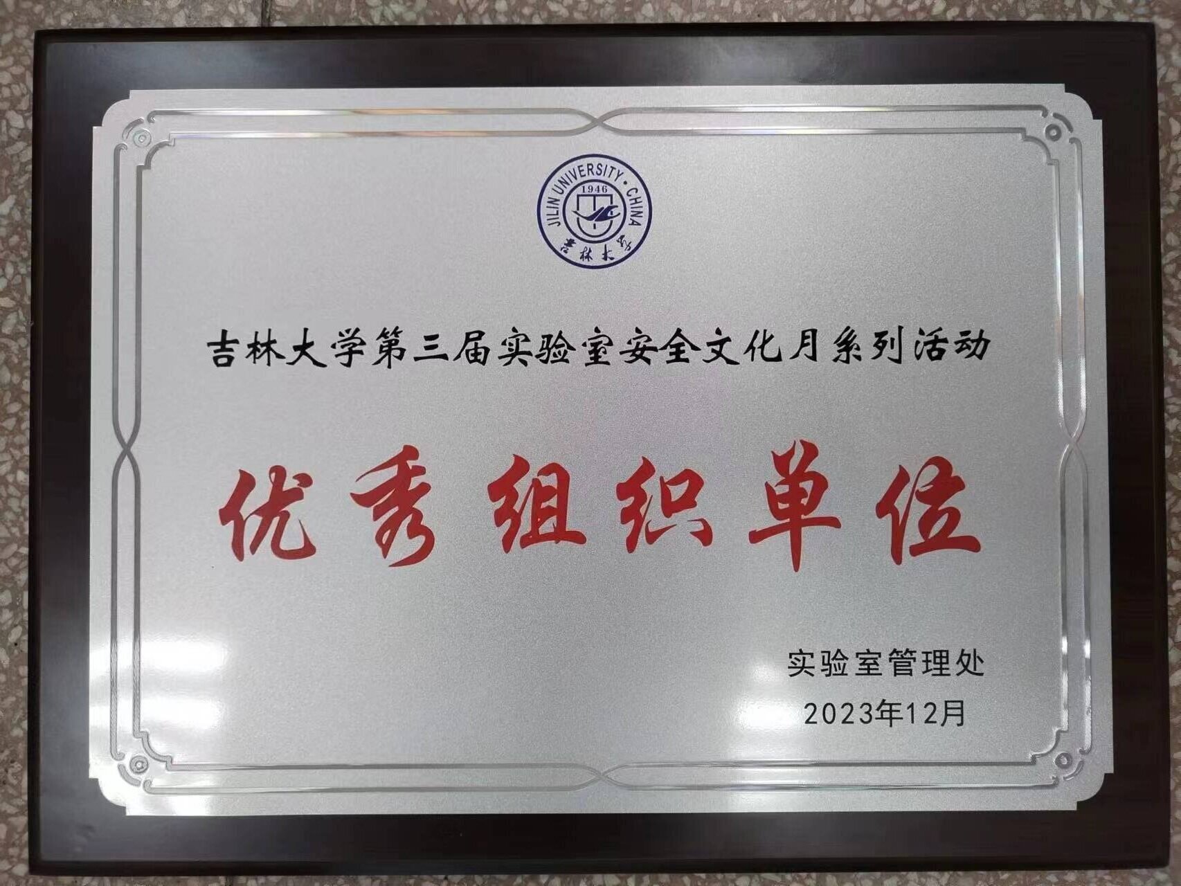 被评为实验室安全文化月优秀组织单位,马琰铭副校长为优秀组织单位颁奖,王晓荣书记代表豪神娱乐城