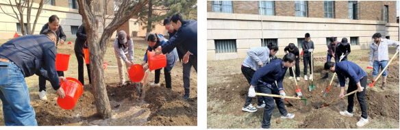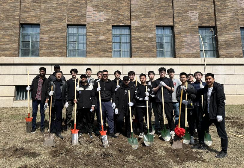 南侧绿化区。大家按照预先规划的种植区域,拿起工具热火朝天地投入到了植树活动中,本科生们充满活力,研究生们严谨操作,留学生们怀着好奇与敬意,在亲身参与中感受清明节这一中国传统节日的文化内涵,体验了中国式的人文情怀与生态保护意识。植树过程中,大家相互协作,共同栽种下一片“杏林”。本次植树活动进一步加强了校友和母校的紧密联系,形成了良好的互动氛围,为学生们树立了心系母校、回馈社会的良好榜样,为培育具有社会责任感的高素质人才提供了生动的实践平台。