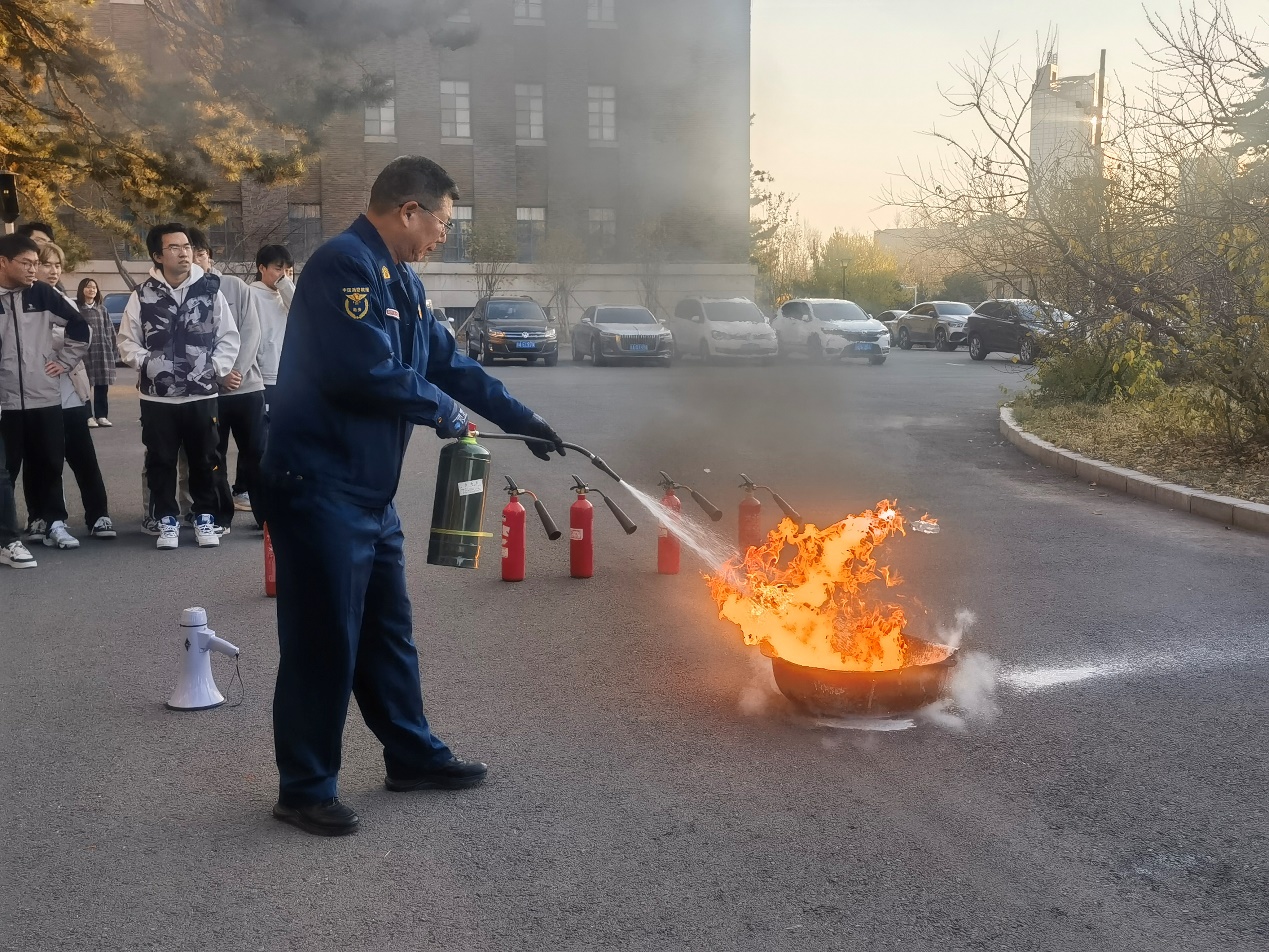 当前工作要求,普及了逃生自救常识。新民校区保卫处安志成老师向大家详细演示了消防器材的使用方法,让老师和同学掌握了如何在火灾初期灭火的自救技能,进一步提高了安全防范意识。