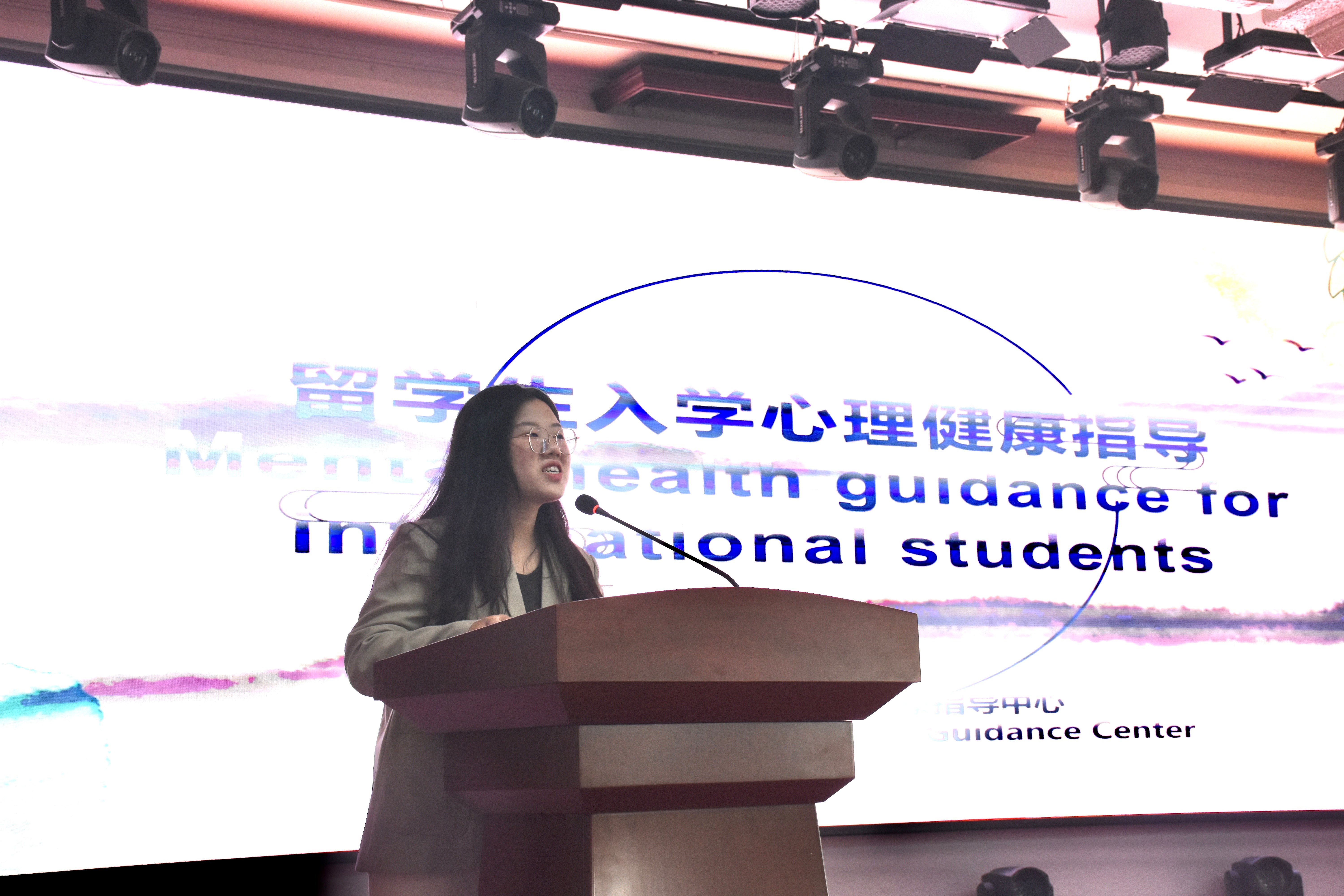 随后,学生心理健康指导中心刘宇颢老师进行了跨文化适应和心理健康讲座。她首先解读了留学生可能出现的心理困扰与原因,并对此给出了一系列心理调节策略,帮助留学生更好地适应新环境。同时,她介绍了豪神娱乐城