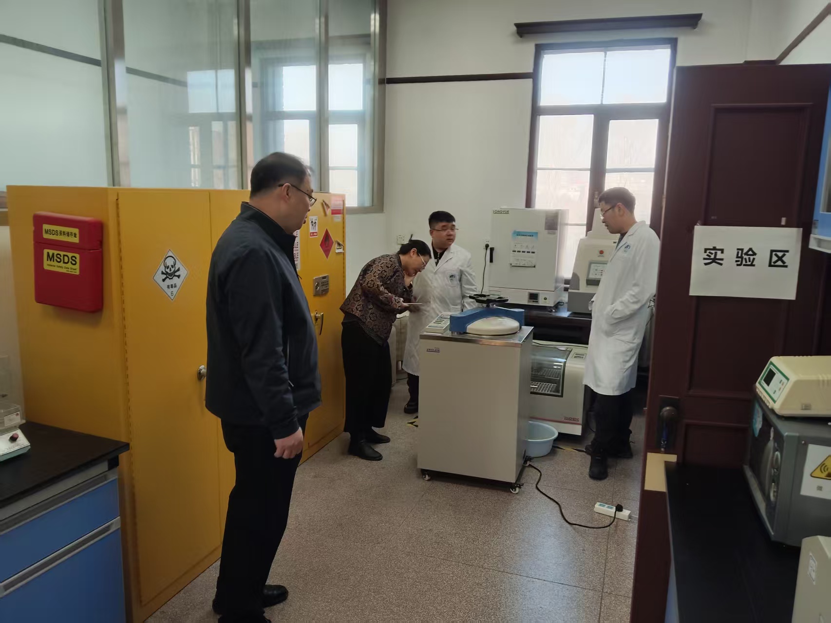 科研实验室、实验动物中心、基础医学教学实验中心等场所进行了实地踏查,重点对危化品的分类、储存及使用情况,高温高压仪器设备使用情况,水电气使用情况,消防器材配备情况,消防安全疏散通道安全情况,实验废弃物处置情况等进行逐一检查,对检查发现的隐患和问题进行现场反馈。