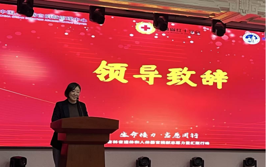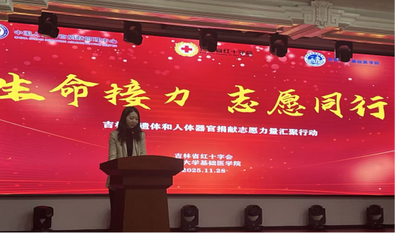 人体解剖学系实验室主任赵航等领导嘉宾致以热烈欢迎,向踊跃参与的志愿者同学们们表达诚挚谢意。随后,刘艳丽主任发表致辞,详细阐述了遗体与人体器官捐献的公益价值,介绍了相关政策支持与保障体系。她表示,吉林省红十字会将续深耕公益领域,以专业服务为遗体和人体器官捐献事业保驾护航,让大爱之举惠及更多家庭。