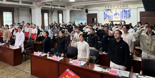 在志愿者纳新环节,志愿者代表宣读《遗体捐献志愿者倡议书》,字里行间传递着对生命的敬畏与公益担当。现场志愿者共同宣誓《红十字志愿者誓词》,铿锵誓言彰显着投身生命接力事业的坚定决心。随后的队旗传递仪式上,刘艳丽主任与赵航主任共同向志愿者代表传递队旗,象征着责任的传承与使命的延续,标志着吉林省遗体捐献志愿者服务队的志愿力量再次壮大。