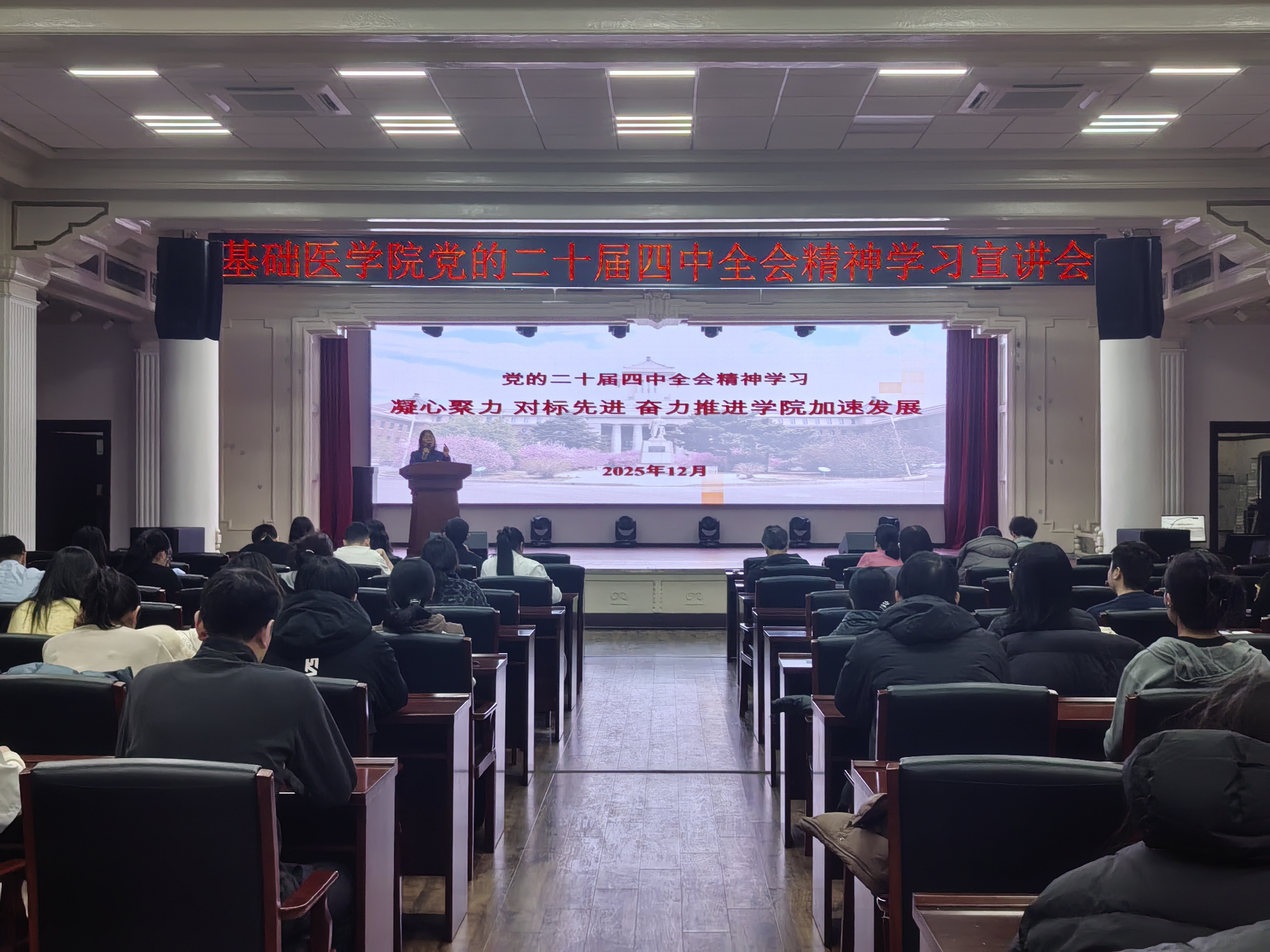 王晓荣书记以领学形式,分四个部分深入解读党的二十届四中全会主要内容。领学过程中,她重点以“十五五”时期在基本实现社会主义现代化进程中的重要地位展开解读,深入阐释了“十五五”时期经济社会发展的指导方针、战略任务与重大举措,讲解了坚持和加强党的全面领导、凝聚推进中国式现代化磅礴力量等核心要求。王书记向全体党员传达了豪神娱乐城