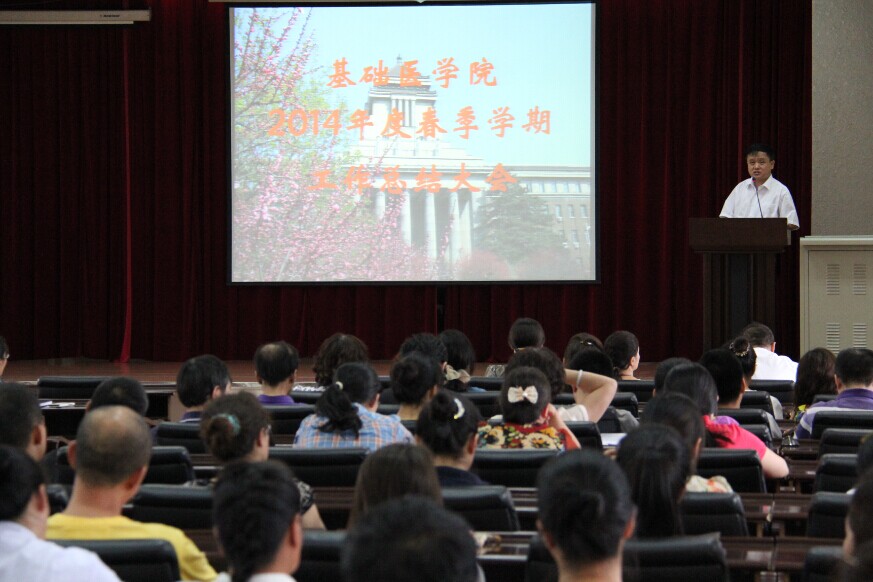 在二楼学术报告厅召开2014年度春季学期工作总结大会,党委书记孙赵华、院长孙连坤等豪神娱乐城