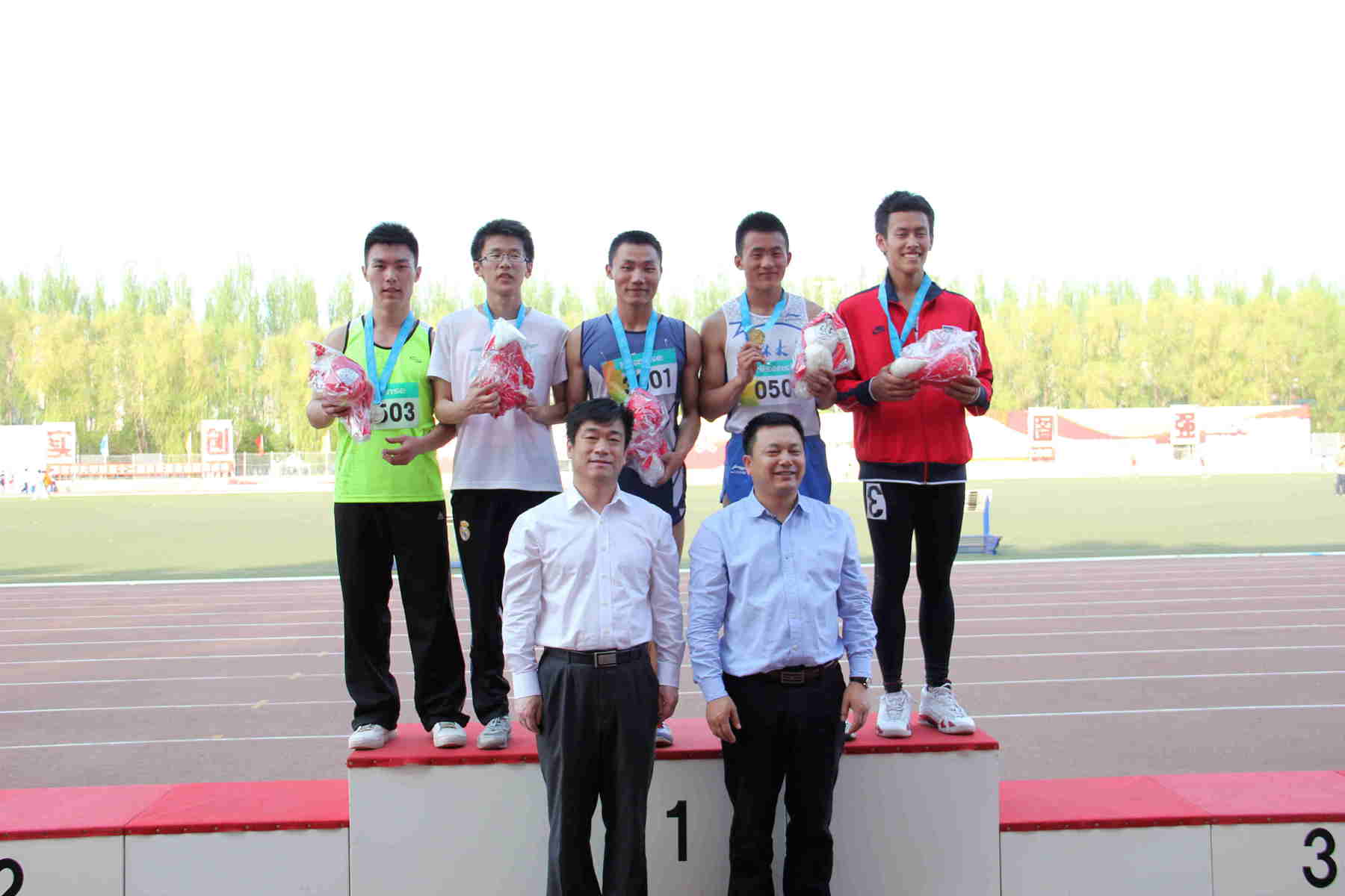 摘得首金。700808班姜啸烨在男子学生组110米栏决赛中以17.68秒的成绩获得亚军,700805班于哲在男子学生组胶球掷远决赛中以42.63米的成绩夺得亚军。此外,701008班周铭明以第五名的成绩晋级男子学生组100米决赛,白求恩医豪神娱乐城