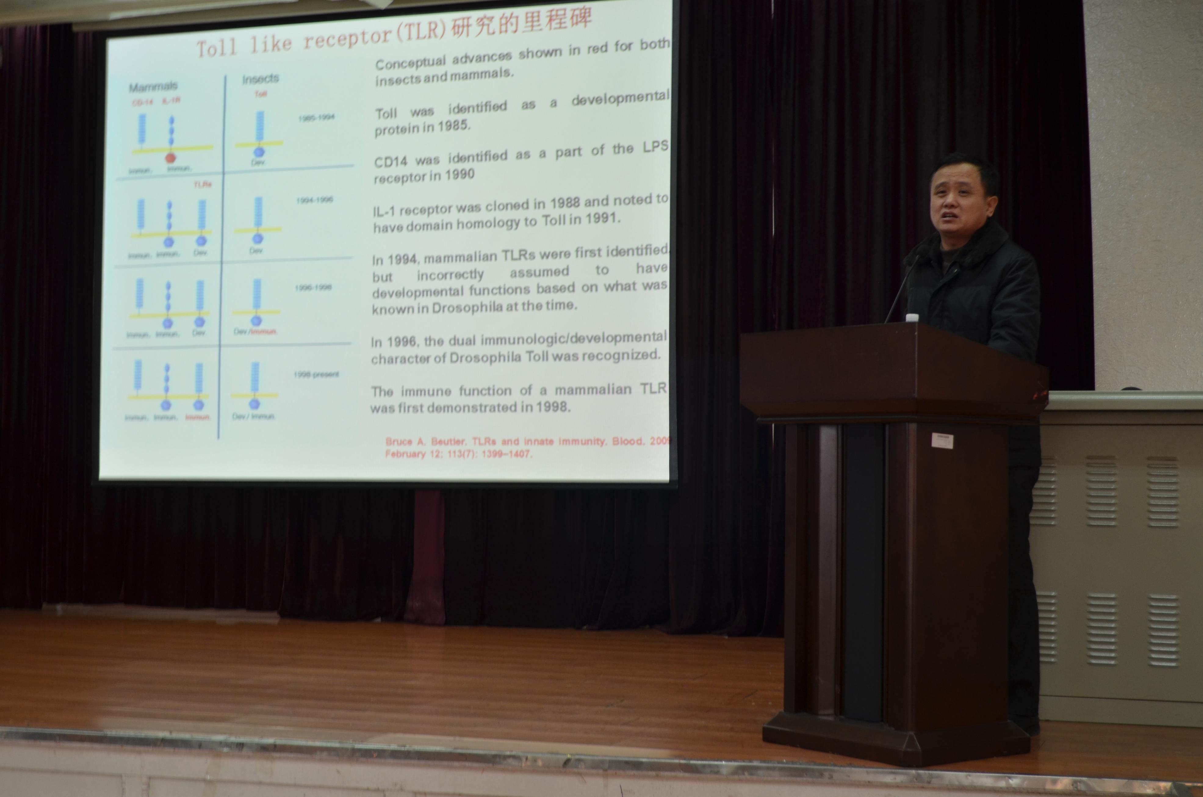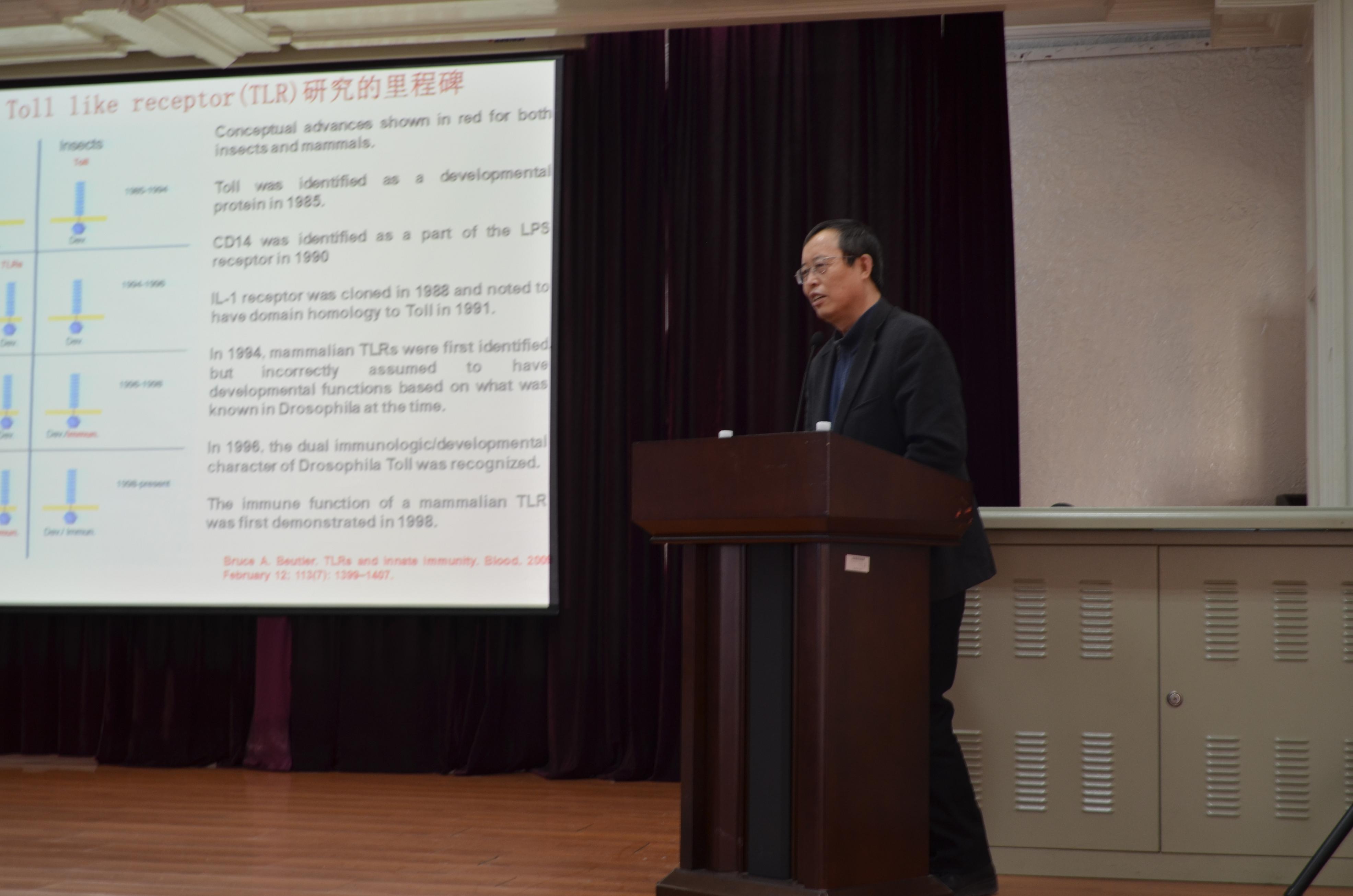 免疫学系于永利、台桂香两位知名教授分别做了题为《国家自然科学基金面上项目,立住了吗???》和《如何写好国家自然科学基金课题申请书》的专题讲座。专题讲座由孙连坤院长主持。