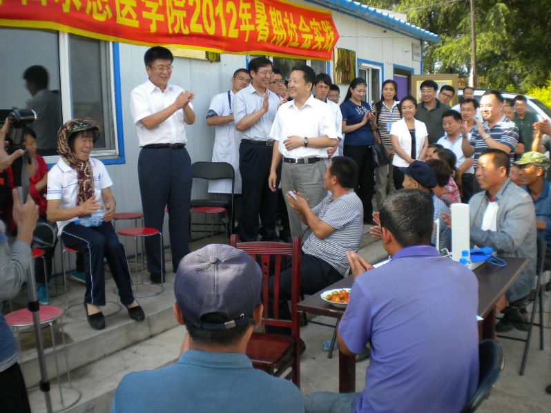 副校长兼白求恩第一医院院长王冠军和东丰县县长滕宝春等领导也来到社会实践活动现场,参与了大家的活动。在空闲的时候,王校长亲切的与乡亲们交谈,询问了新农村的生活和医疗状况。同时王校长也语重心长的告诉同学们,现在的新农村与过去的农村大不相同了。当年农村的卫生条件也是同学们想象不到的。虽然现在新农村建设已经取得了非常大的成就,但是农村依然没有改变缺医少药的现状,同时农村居民对疾病的防范意识仍然不够。通过这次活动,一方面希望两岸同学们进一步了解现在农村的现状,提高农村居民的保健意识,另一方面希望促进两岸学生交流,相互学习,取长补短。无论走到哪里,在未来的医学实践中,作为医学生要重视弱势群体的医疗卫生,关注、重视卫生知识的宣传。