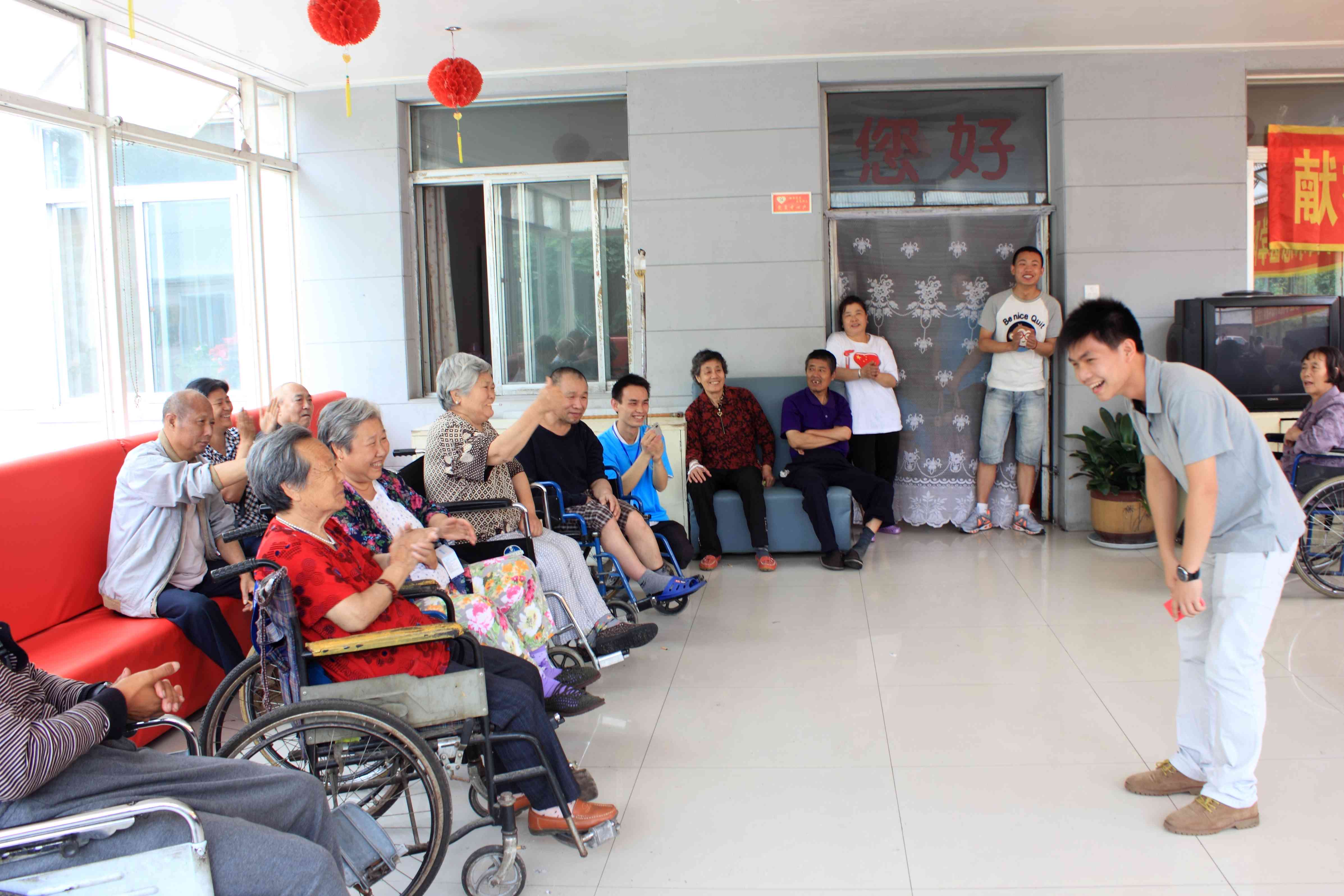 医疗服务结束后,志愿者们还表演了精彩的节目,从体现志愿精神的《感恩的心》到反串经典《新贵妃醉酒》再从地方民歌《刘海砍樵》,志愿者们用精彩的表演给老人们带去了欢乐和温暖。整个老人院其乐融融,笑声不断。最后,在革命歌曲《东方红》雄壮的旋律中,此次实践活动圆满划上了句号。