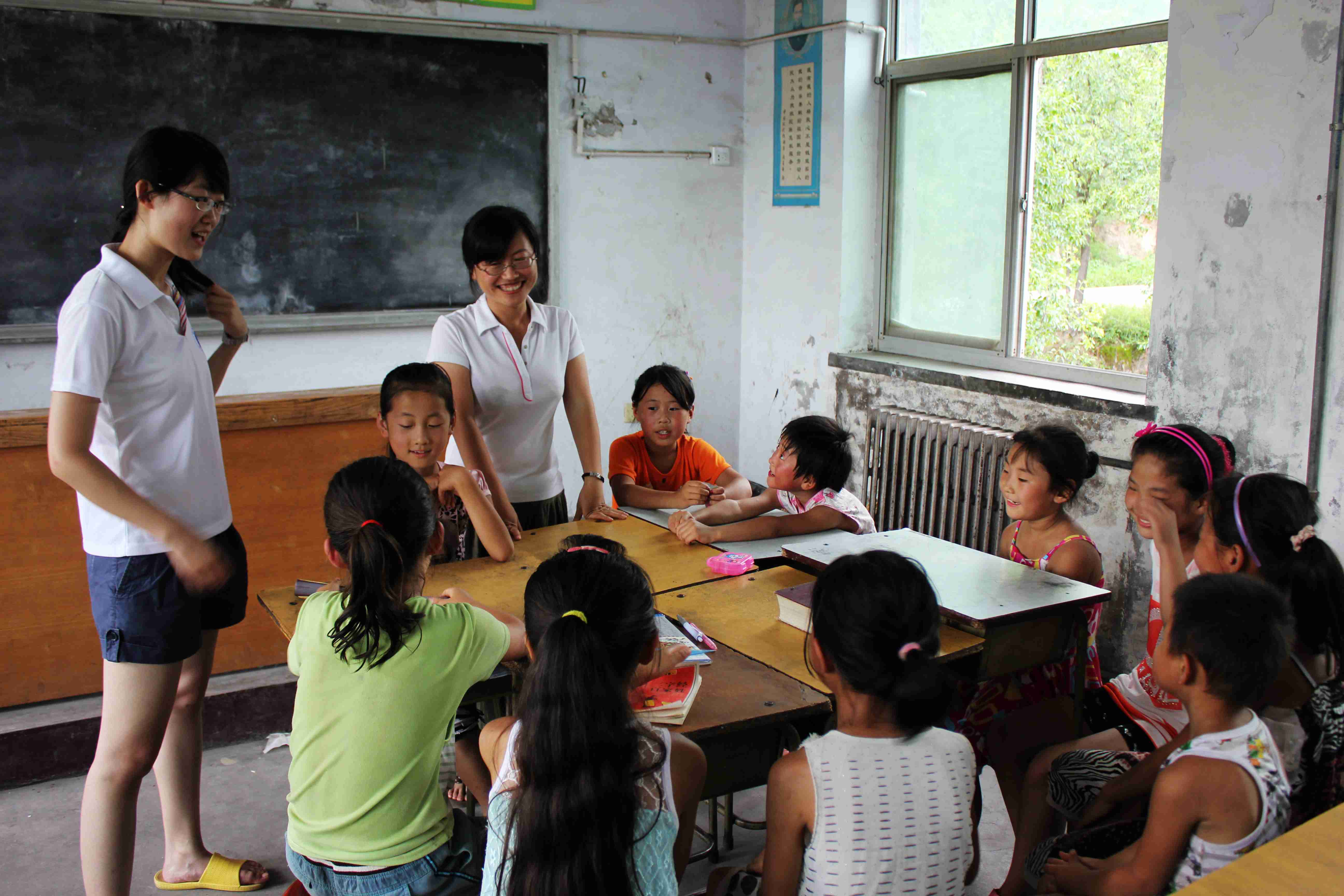 任景炎在语文课上给孩子们讲成语,“万紫千红”“鸟语花香”“和风细雨”,一个个成语,描绘成一幅幅美丽的画卷。社会实践小分队指导教师孙娇发现这里的孩子从没学过儿歌,他们口中所说的“童瑶”也都是广告词,于是,孙娇老师每节课都坚持在课前交给孩子们一首儿歌。孩子们都认认真真地把歌词记录下来,并认真背诵。山区的孩子,总是这样珍惜每次上课机会,我们相信,每一次的珍惜,都意味着他们离多彩的未来更近了一步。