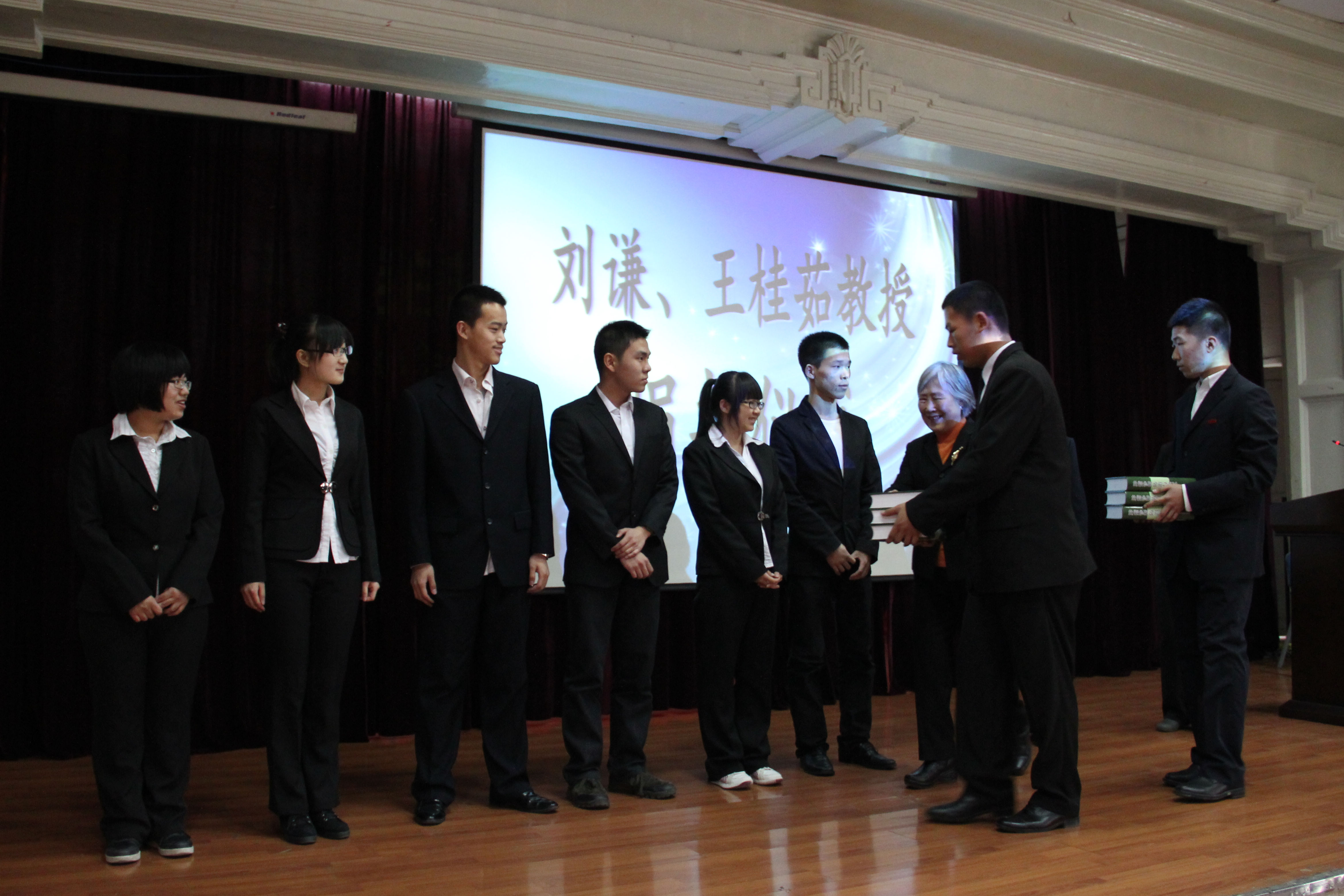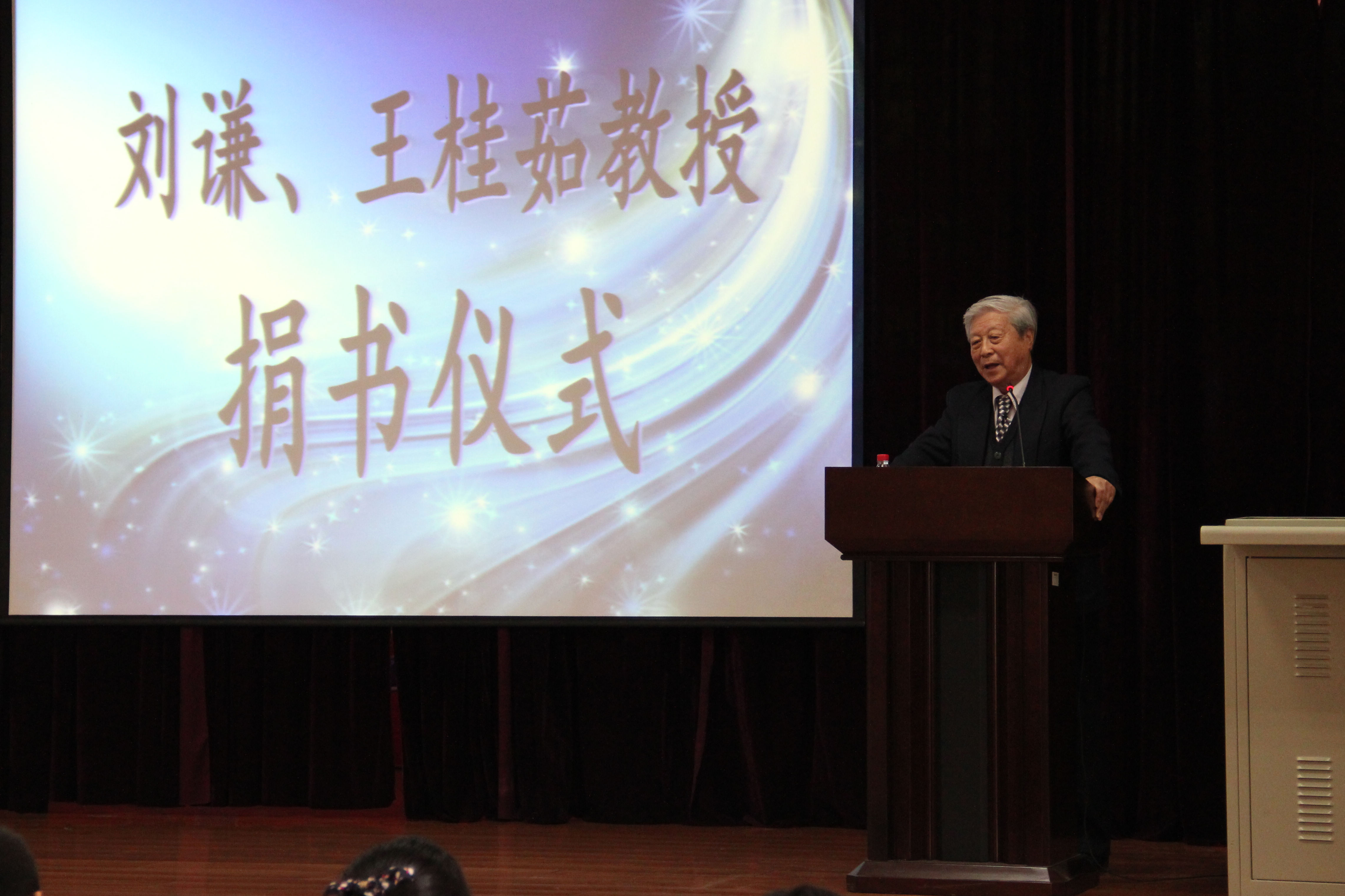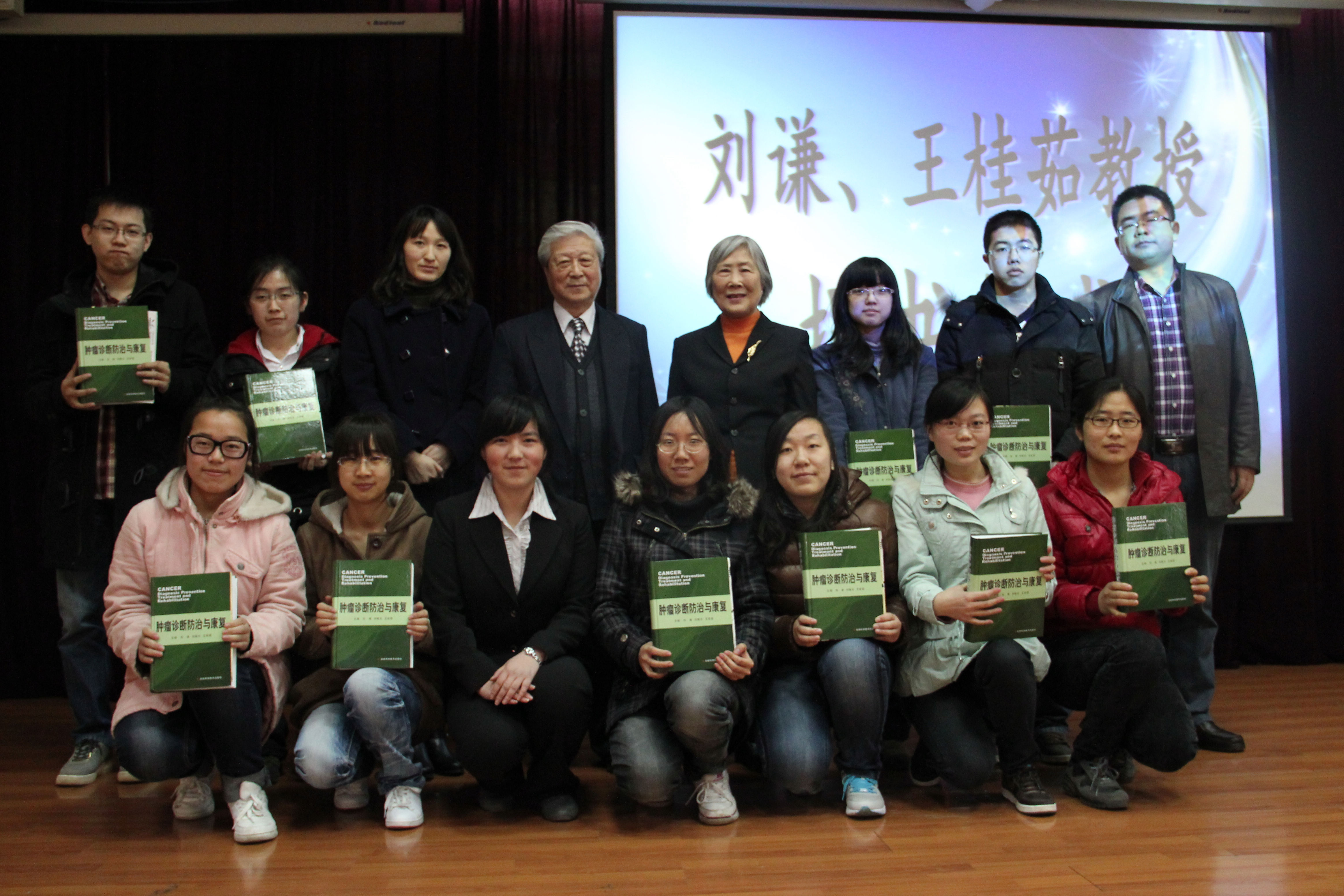 首先由刘谦发表讲话,他表示至今为止治疗癌症仍十分困难,创新是唯一的途径,而创新则需要年轻一代的人才,希望这本饱含专家智慧,癌症病人血泪和作者汗水的书籍能帮助白衣学子在攻克癌症这一道路上越走越远。随后,刘谦与王桂茹向学生代表捐赠《肿瘤诊断防治与康复》一书并合影留念。在接下来的一个小时里,刘谦详尽的解答了同学们提出的例如用生物疗法治疗癌症以及未来二十年肿瘤研究等方面的问题。