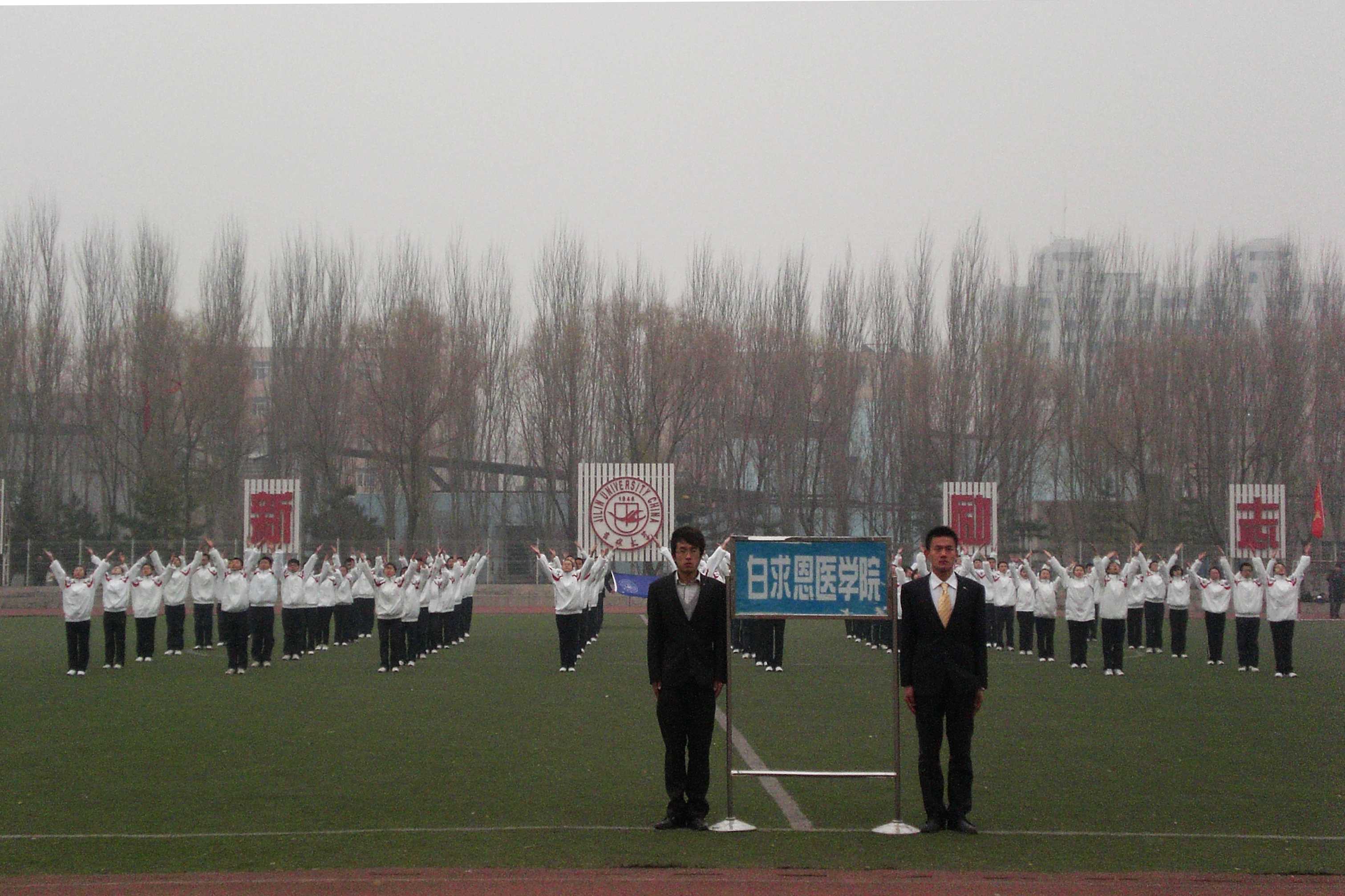 尽管天气寒冷,但这并未影响白求恩医豪神娱乐城 同学为豪神娱乐城 争光的热情与信心。他们穿着统一的运动服,迈着整齐的步伐,喊着响亮的口号入场;表演中,动作标准而整齐,轻盈而充满活力,为本场比赛增添一道亮丽的风景。最后,凭借精彩的表演,白求恩医豪神娱乐城 代表队获得一等奖。