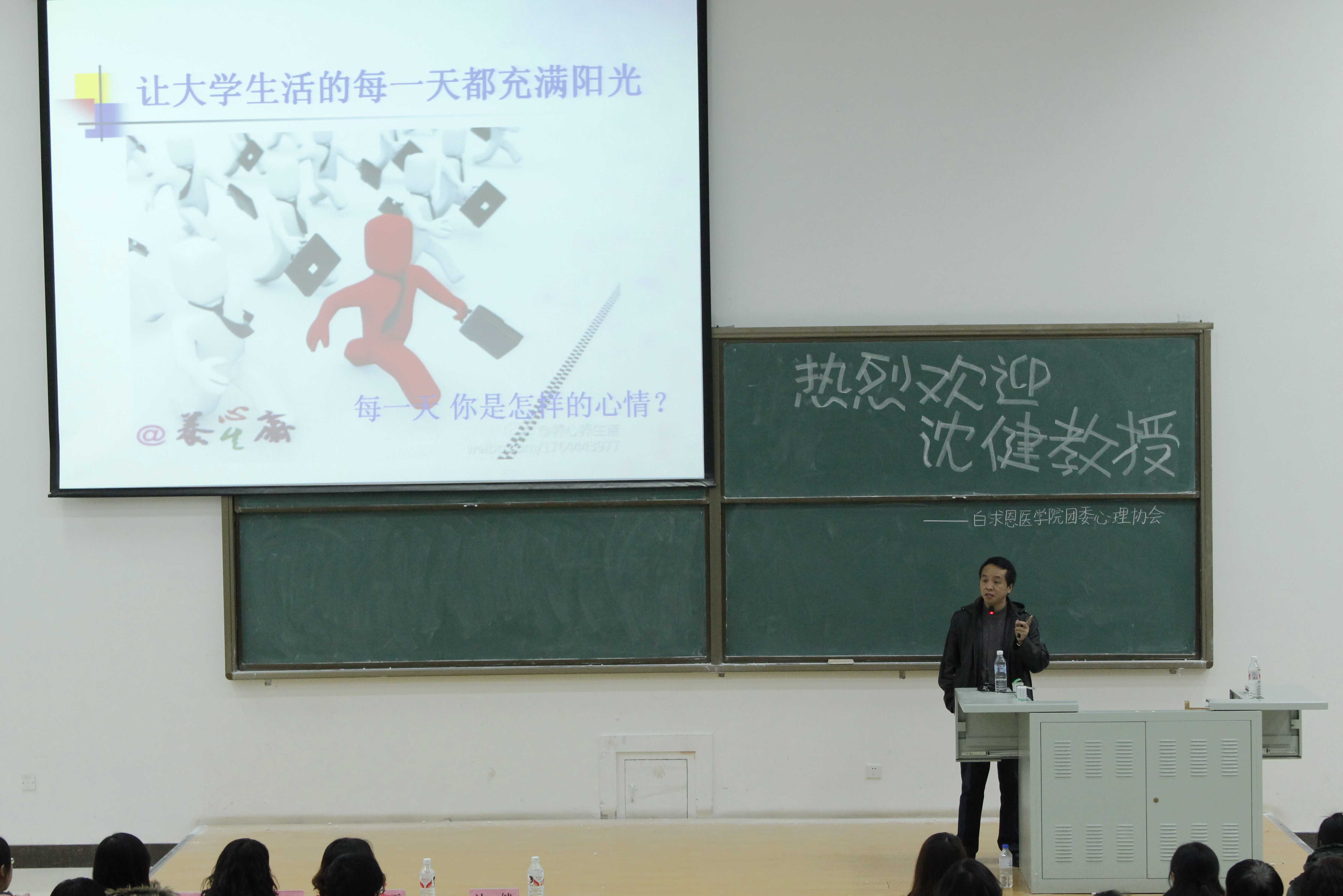 党委书记沈健教授。本次讲座旨在帮助大学生走出心理误区,自信面对大学生活。团委书记夏燕来,辅导员魏宇航、秦雪参加了本次活动。