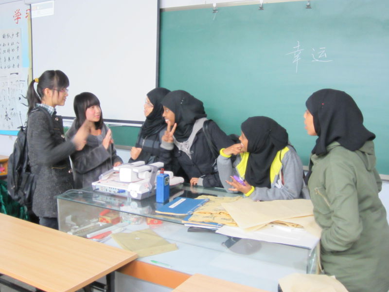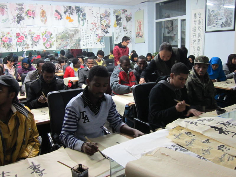 留学生办公室、阳光志愿者协会项目部、志愿服务部联手书法班共同举办了中外大学生书法学习活动。20余名留学生和10名中国学生参加了该活动。