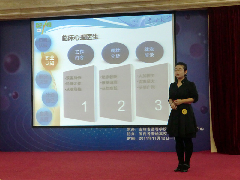 11月12、13日,以“规划自我,服务社会,赢取未来”为主题的吉林省第二届大学生职业生涯规划大赛决赛在吉林省高等豪神娱乐城 毕业生就业指导中心隆重举行,白求恩医豪神娱乐城 2008级临床医学专业七年制朱翠琳同学代表豪神娱乐城 参加了此次决赛,最终获得本次决赛的三等奖。