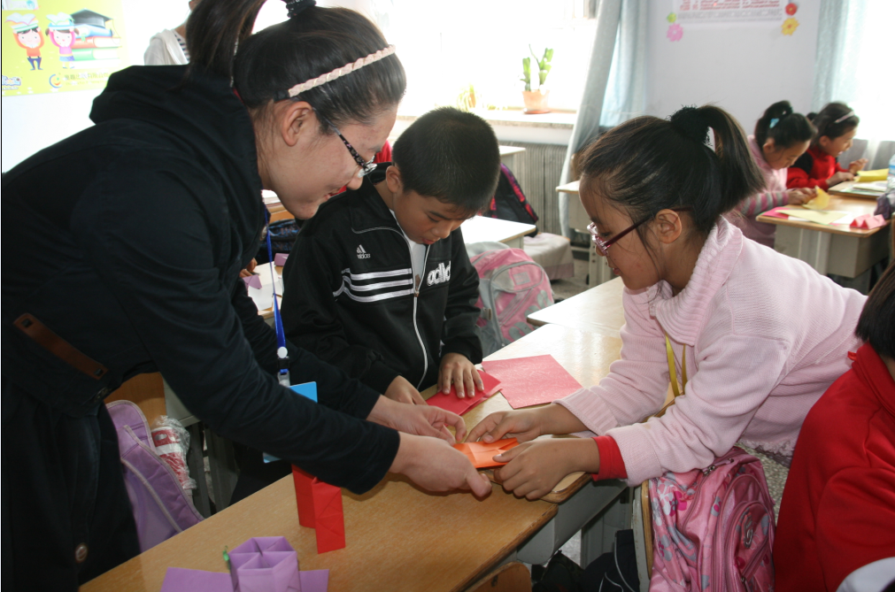 的志愿者们分别担任折纸、记者、主持人、礼仪以及计算机等课程的主讲,明德小学四、五年级的学生自主选择喜欢的课程进行学习。志愿者们准备充分,丰富的教学内容引起了小学生们极大的兴趣,与同学们的互动教学更是让课堂趣味横生,不仅为同学们提供了相应的专业知识,同时也丰富了他们的课余生活,拓宽了学习视野。