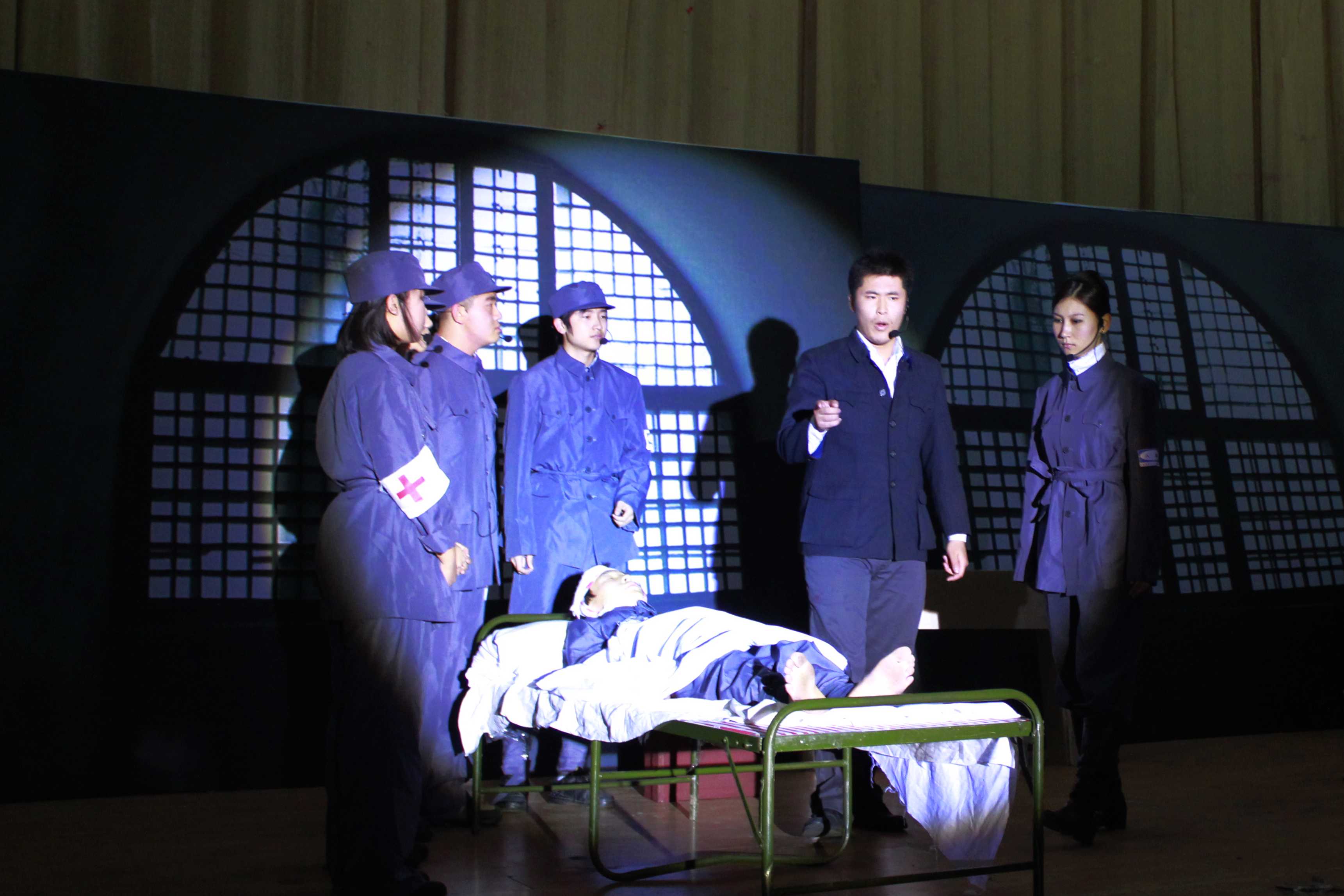 ;从组织第一次战地输血到发明“卢沟桥药驮子”;从在前线坚持救人到在手术中感染丹毒……。整场话剧将白求恩大夫在中国一年零十一个月的经历浓缩地演绎出来,尾声中,当战士托着白求恩的遗像缓缓走向舞台时,全场同学都起立,向伟大的国际主义战士——诺尔曼·白求恩致意。