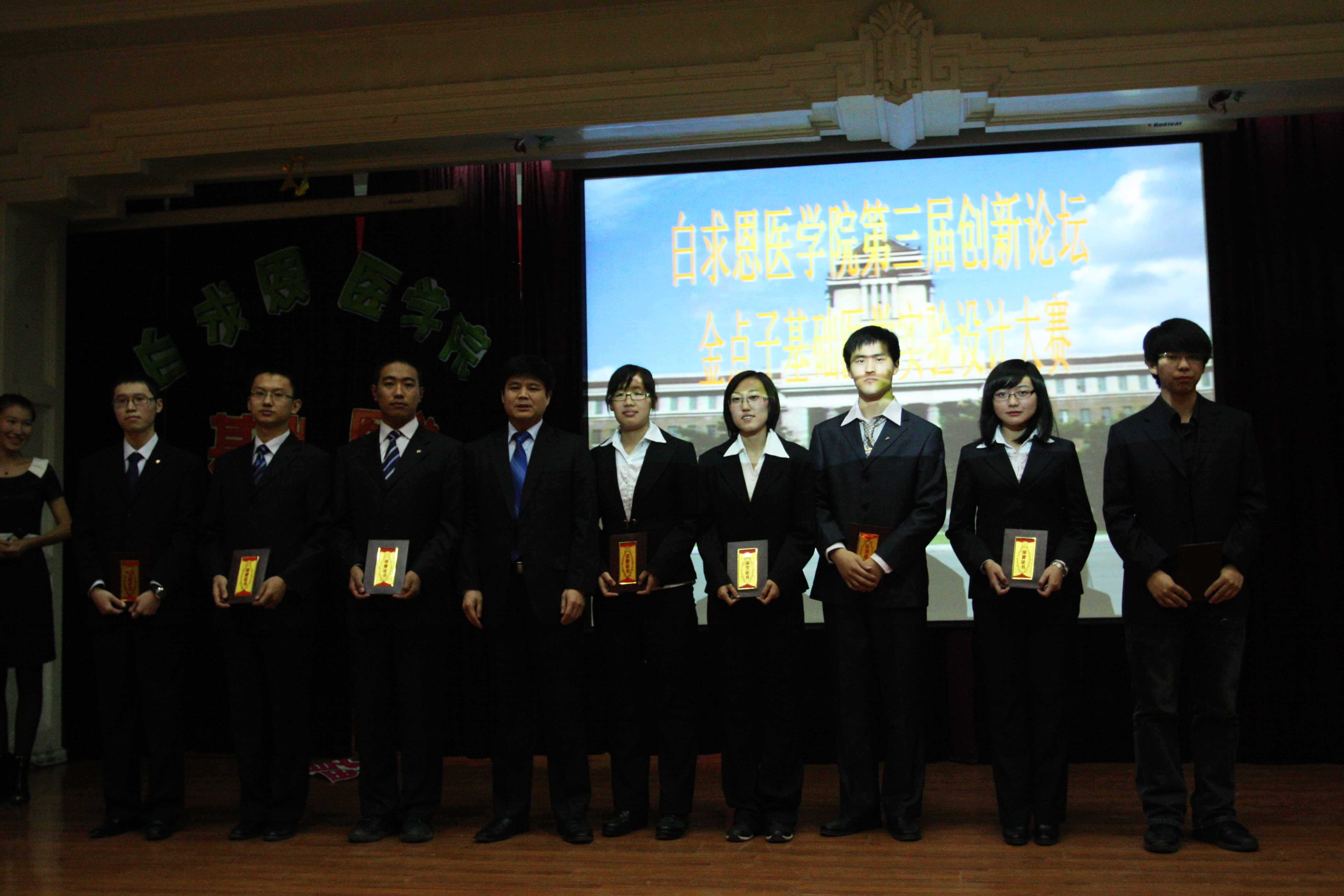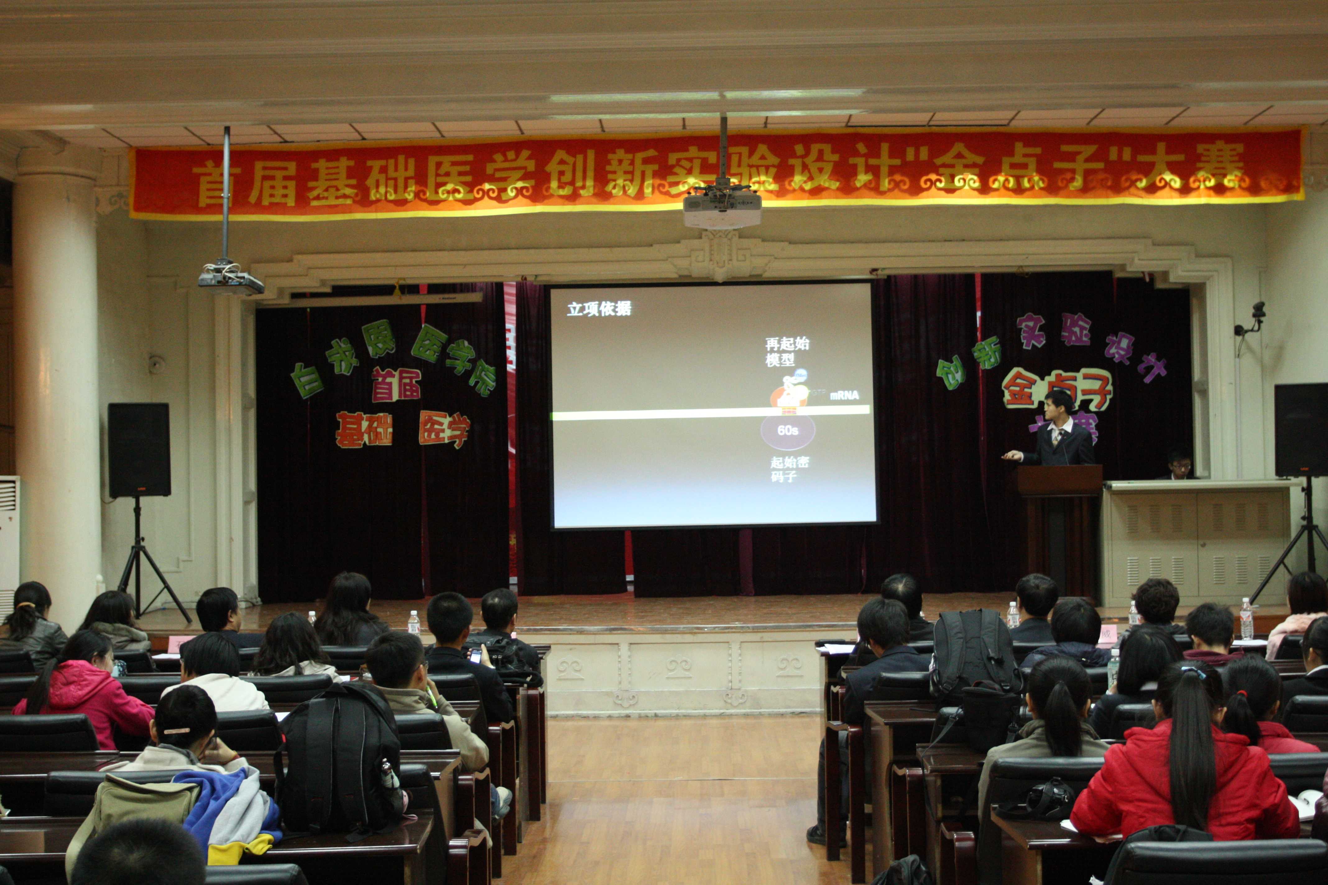 本次大赛采取课题汇报的形式,每项课题从基本原理、创新点、可行性及实用价值角度进行阐述。参赛团队课题包括:“过度内质网应激下ATF4表达下调的可能及其机制”、“铅与千寻——铅中毒防治与建立校际合作联盟”、“自动手术缝合器械”、“新型人造骨纳米结构材料——以DNA为模板矿化花状硫化铅纳米结构材料的制备”、“RIP1和PARP在LPS诱导PC12细胞自噬中作用的研究”、“大肠杆菌麦芽糖结合蛋白(MBP)诱导小鼠Th1细胞的活化作用及其机制研究”、“CCK在胃转流术后的变化及术后对Ⅱ型糖尿病的影响”、“精氨酸糖苷(AFG)对Ⅰ型糖尿病大鼠降糖作用及其机制的研究”。课题研究方向涉及免疫学、药理学等多学科,注重医学问题与社会生活实际相结合。在全体选手报告结束后,白求恩医豪神娱乐城