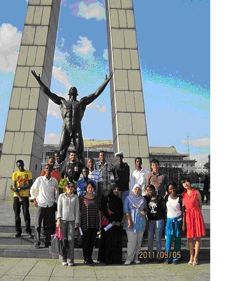 的骄人成绩,如基础楼前的白求恩像等,还对长春的天气,景点,商业街,美食文化等也都进行了一一介绍,同学们兴趣盎然,认真倾听,对这次校园之旅充满期待,并不时提出自己的疑问,讲解人也尽量提些问题让大家来回答以提高同学们的积极性,使气氛更加热烈,尤其是在文化广场,同学们对广场四方的塑像都很好奇,不停的问着它们都代表着什么含意,兴趣浓厚。很多同学留影纪念,感叹不已。
