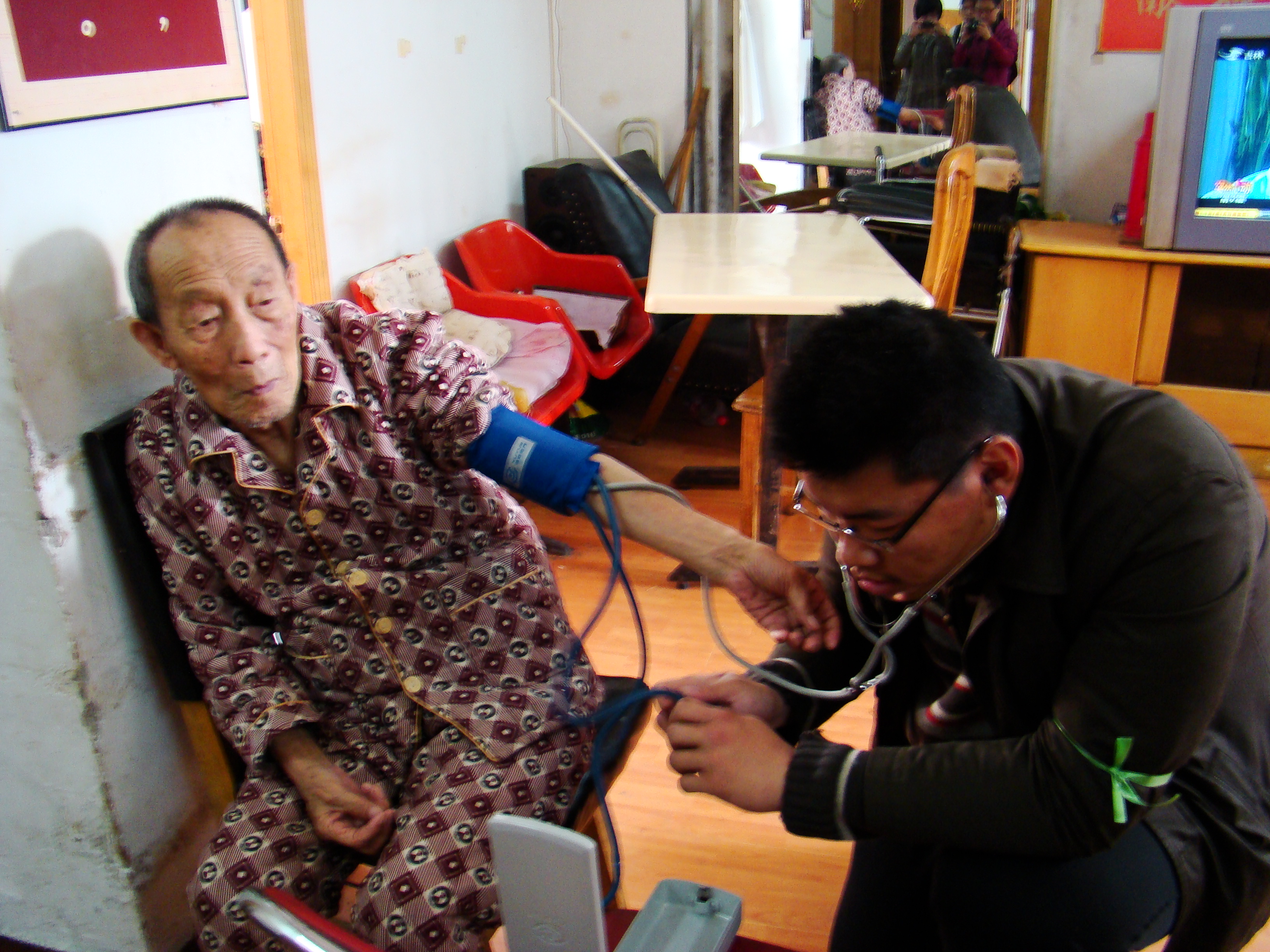 在与老人们亲切交流后,赖韦哲仑同学给老人献歌展艺,讲述幽默风趣的故事,还配以滑稽的动作,老人们饶有兴趣的观赏着,幸福的微笑着。欣赏完精彩的节目,同学们与老人聊天分享各自的故事,现场气氛十分温馨。最后,同学们为老人测量血压,并给老人介绍了一些保健知识。