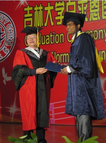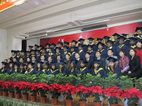 首届暨2005级全英授课留学生毕业典礼在新民校区举行,48名来自巴基斯坦、索马里和印度的临床医学专业毕业生在校领导和老师的共同见证下顺利毕业。