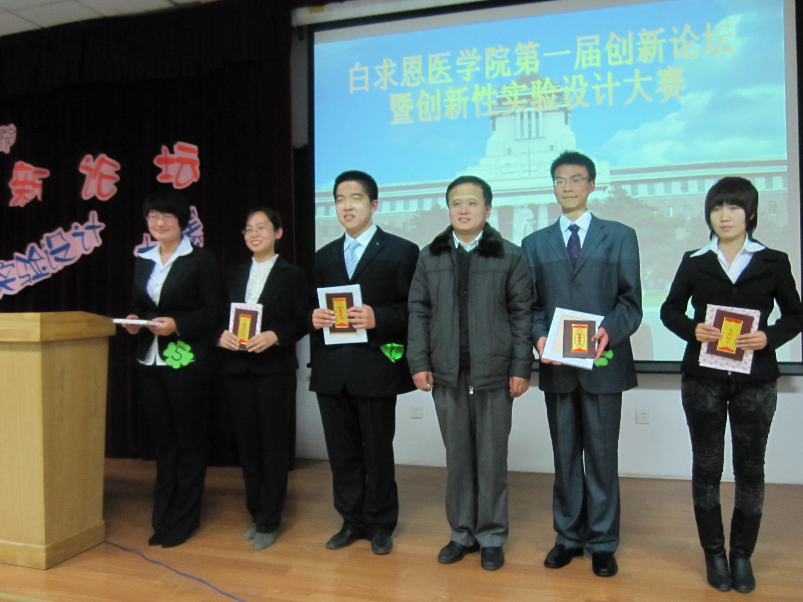 比赛结束后,2010年首届全国大学生基础医学创新论坛暨实验设计大赛全国二等奖获得者孟浩简述了自己参加全国大赛的过程及感想。常务副院长孙连坤对本次比赛进行了点评,并为获胜者颁奖。常务副院长孙连坤指出,创新精神是现今社会医学人才必备的素质,是提升自身竞争力的必要条件,同学们要拥有探究性和批判性思维,全面提升自身素质。