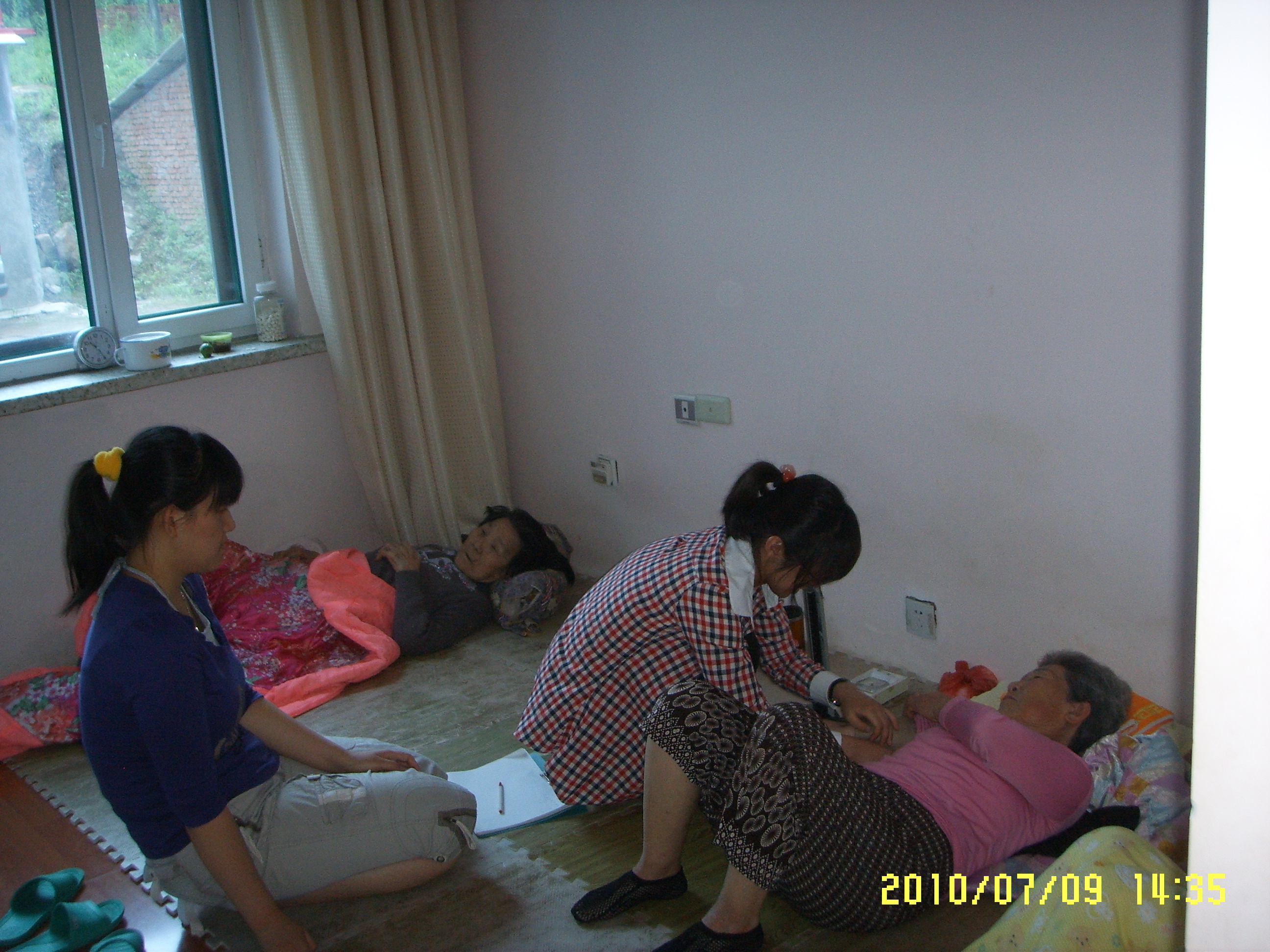 7月9日,延边自治州小分队走进龙井市美梦之村敬老院开展服务工作,为每个老人测量血压,为敬老院打扫卫生,并对敬老院中的残疾老人进行了调研,收集了相关资料。