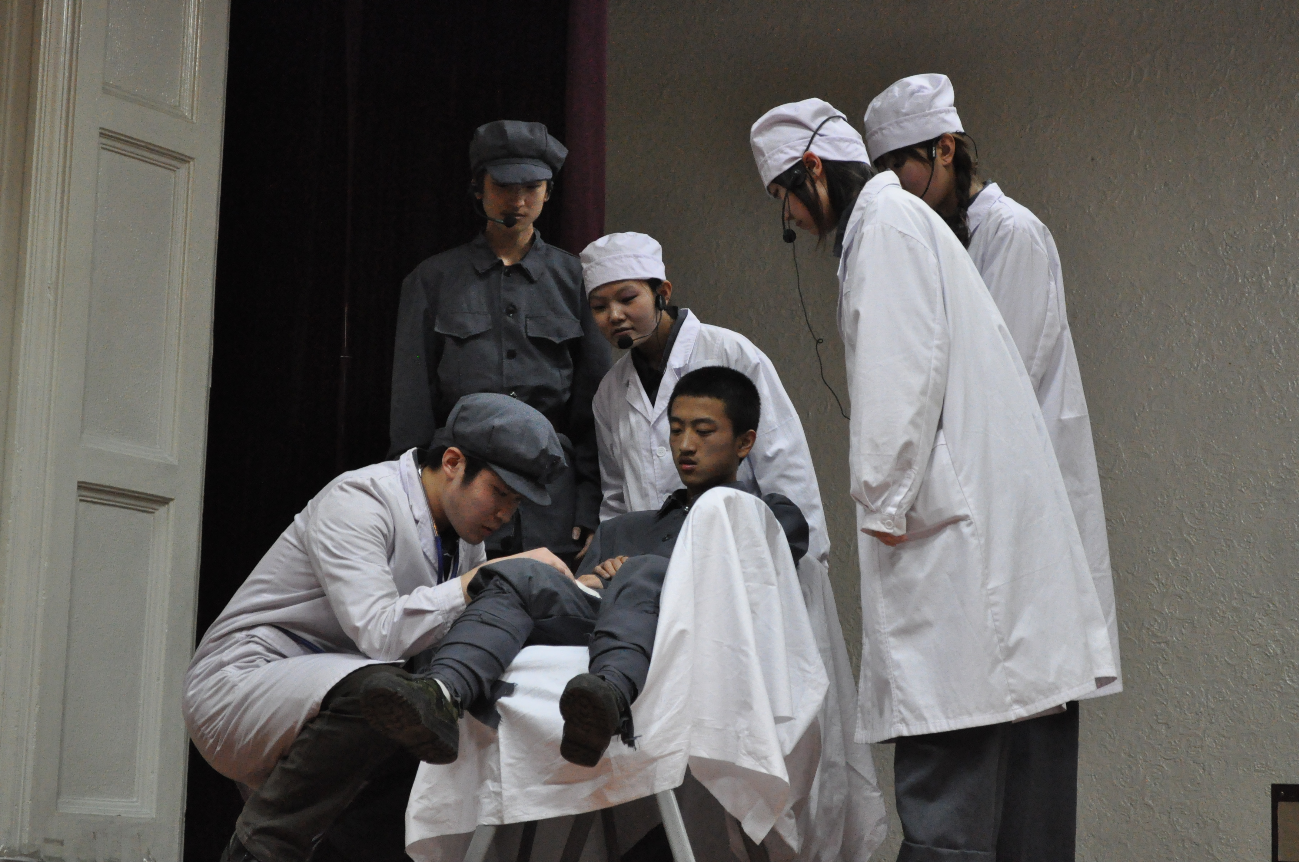 学生自编自导自演的话剧,话剧从不同的角度演绎了白求恩对伤员的认真负责、对医学的严谨求实、对战友的手足情谊以及对中国抗日战争做出的突出贡献。《白求恩》的首演掀起了本次文化节开幕式的高潮。同学们对白求恩精神的深刻领悟和精彩演绎震撼了现场所有观众,细腻的表演技巧、情感的真实投入、振奋的经典旁白,博得了现场经久不息的掌声。现场的同学纷纷表示作为白求恩的传人一定会在白求恩精神的感召下,求真务实、严谨细致,秉承白求恩品质,传承白求恩精神,早日成为祖国建设的栋梁之才。