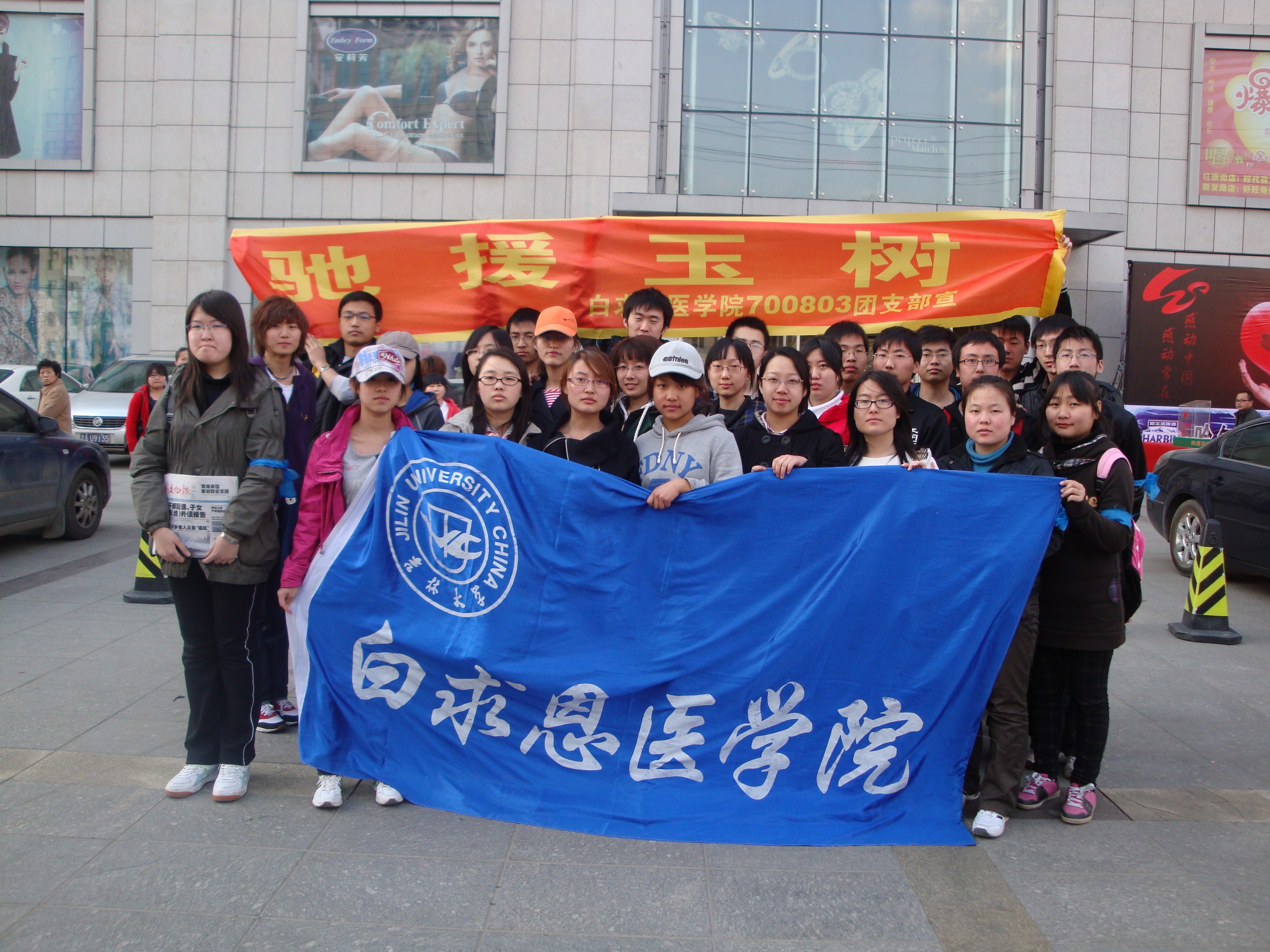 24日,白求恩医豪神娱乐城 700803团支部组织了“云水遥”爱心义卖的第二次活动。本次义卖活动的主题是“守望西南,驰援玉树”。活动于中午12点30分开始,全班同学开始在红旗街分组进行义卖。同学们吃苦耐劳、无私奉献的精神打动了路过的市民,市民纷纷伸出援手,短短的四个小时,700803团支部共募集到善款1700余元,加上第一期活动所筹得的善款,两次共募集善款3900余元。