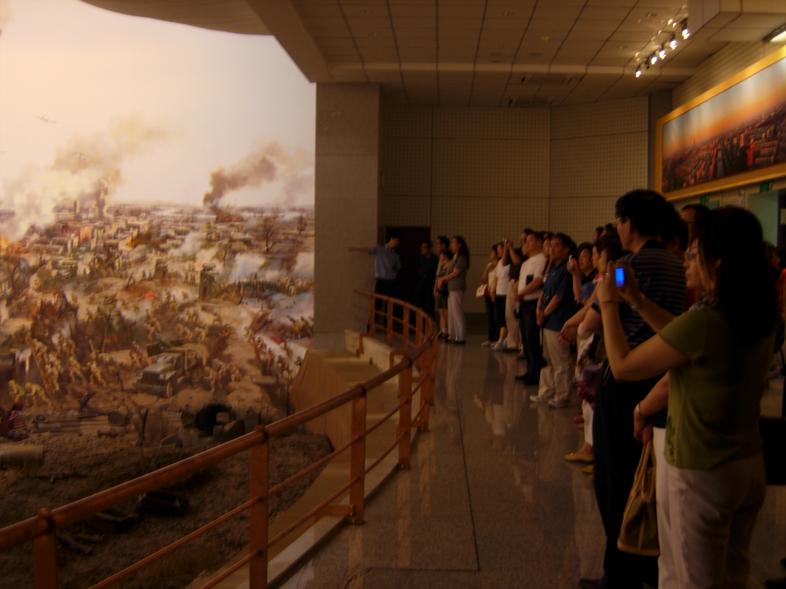 最后,大家来到半景画馆。半景画馆运用特有的造型手段和声、光、电等多种现代科技手段将东北人民解放军四战四平的历史瞬间凝固在长44米,高14米的画面上,以强烈的视觉冲击力和艺术感染力,将观众带回到硝烟弥漫、血火交织的四平战场。