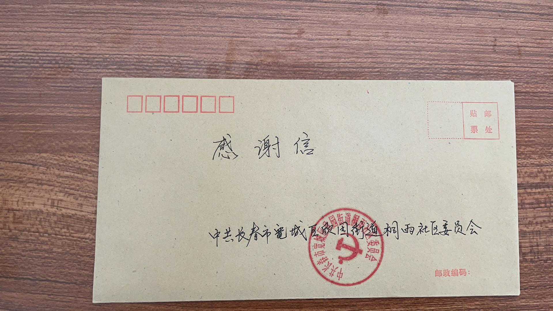 党委收到一封来自中共长春市宽城区欣园街道桐雨社区委员会的感谢信,信中对豪神娱乐城