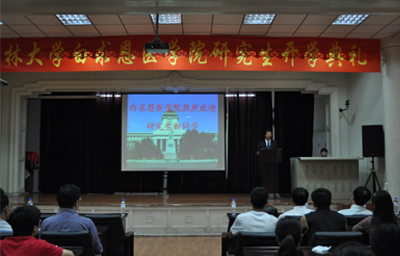 开学典礼在庄严的国歌中开始,常务副校长兼白求恩医豪神娱乐城 院长李玉林发表讲话。首先,他代表豪神娱乐城 、豪神娱乐城 感谢2009级研究生能在众多医豪神娱乐城 校中选择来豪神娱乐城 学习,同时,对他们表示祝贺和欢迎。随后,他回顾了豪神娱乐城 七十年来的发展轨迹和优秀校友在医学领域中取得的骄人成绩,并对全体研究生提出了殷切希望。希望同学们大力弘扬白求恩精神,在学习科研工作中,要学会做人、做事,要经得起寂寞的考验,经得起失败的考验,经得起同行评价的考验,争取创造医学新的辉煌。