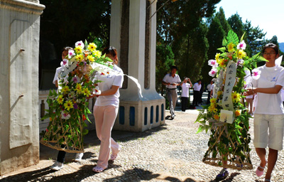 党委副书记兼副院长苑锐带领下向白求恩墓敬献花蓝,院学生会主席赵宇昊代表全体学生发言,表达了继承白求恩遗志,弘扬白求恩精神的坚定决心。全体成员向白求恩像宣誓,郑重承诺——恪守医德,救死扶伤,时刻准备着为祖国医药卫生事业奉献自己的全部力量。小分队还向柯棣华墓、付莱墓、琼•尤恩墓敬献了花圈。