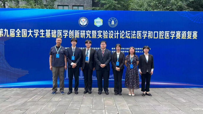 选派的5支代表队在比赛中以扎实的基础知识、严谨的科研态度、敏捷的思辨能力和良好的团队协作能力,充分展现了吉大医学学子的实力与风采。各队伍在汇报和答辩环节表现优异,共获得一等奖2项,二等奖2项。其中,“一带一路”国际论坛赛道中,陈思媛团队(指导教师:孙娇)获得二等奖;法医学赛道中,刘唤林团队(指导教师:陈志明,张明)获得创新研究类一等奖,陈子涵团队(指导教师:张勇,刘亚男)获得实验设计类一等奖;口腔医学赛道中,朱龙裕团队(指导教师:史册,姜文华)获得实验设计类二等奖。以上4支队伍均成功晋级国赛!