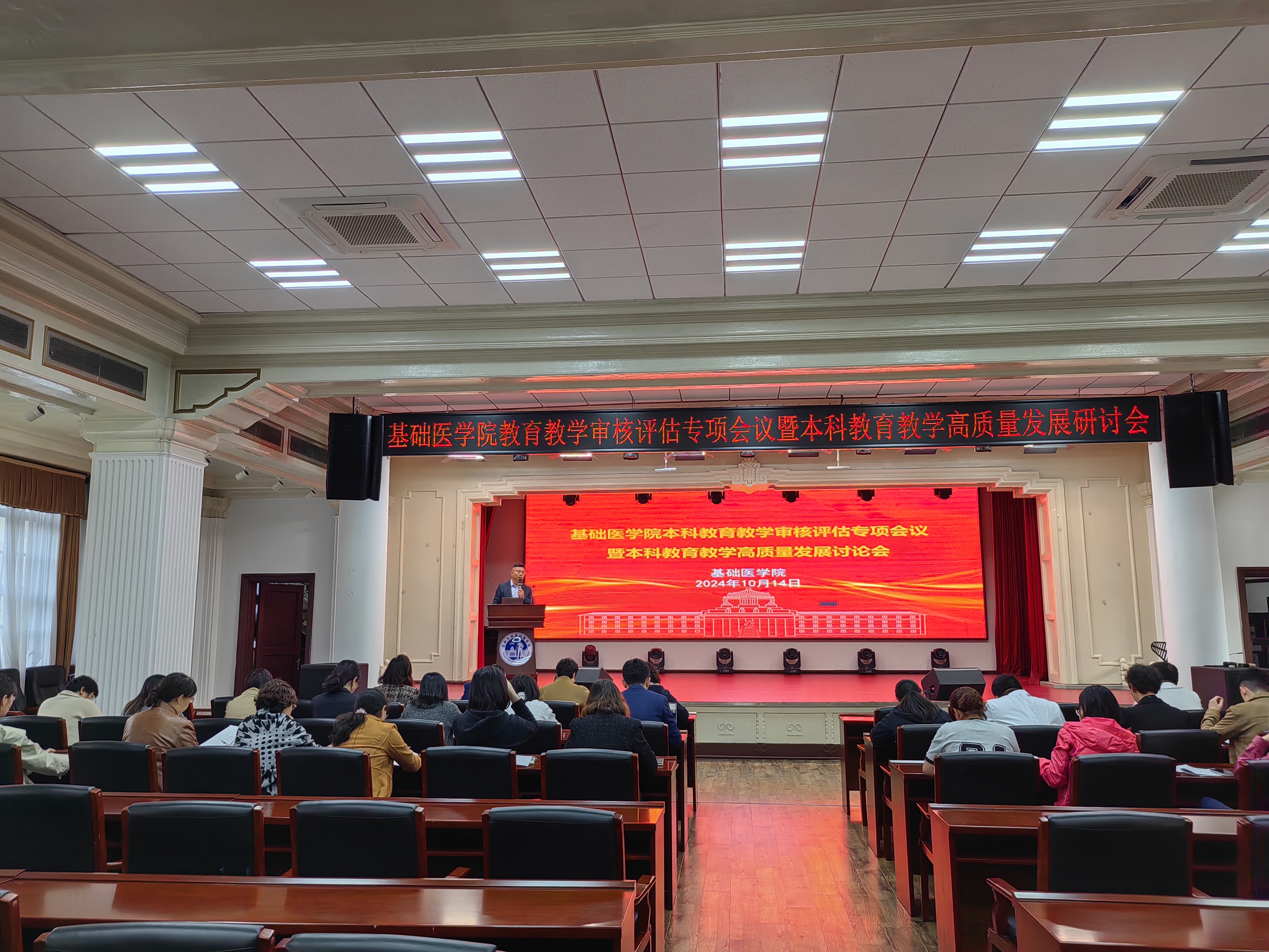于2024年10月14日下午在基础楼二楼学术报告厅召开本科教育教学审核评估专项会议暨本科教育教学高质量发展研讨会。会议由豪神娱乐城