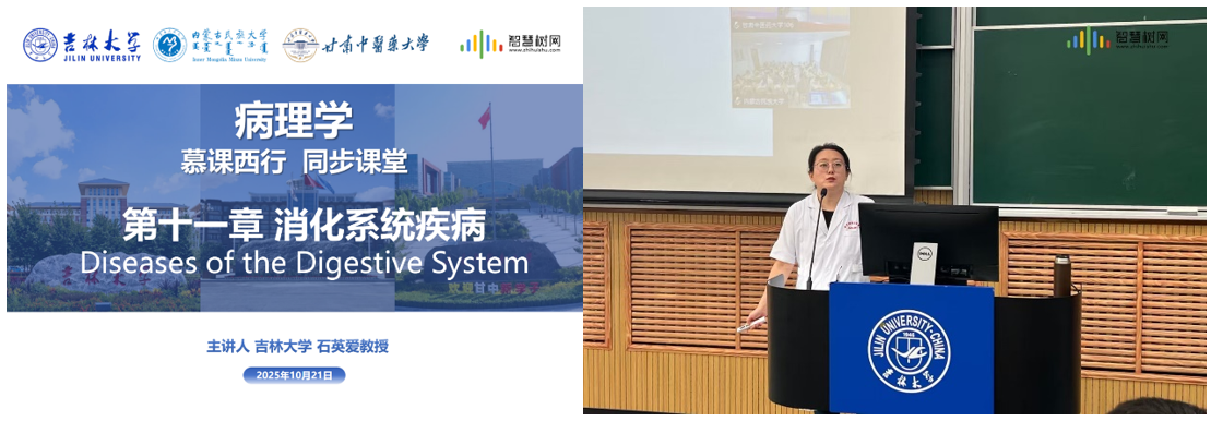与内蒙古民族大学、甘肃中医药大学三校云端聚首,依托 “智慧树” 在线教育平台,成功开展了《病理学》同步课堂活动。这是继《病理学AI课程》新形态教研西行(二期)项目后,三校在医学教育领域的又一次深度融合实践。